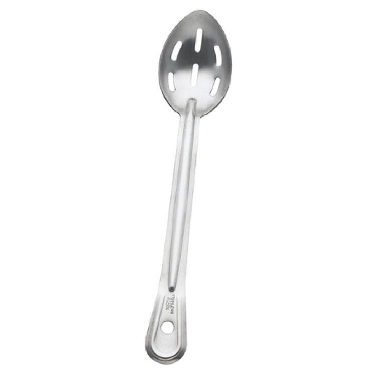The Browne Foodservice 4774 Renaissance Serving Spoon 15"L Slotted is a meticulously crafted utensil designed for versatility and precision in food service environments. At 15 inches in length, this spoon offers an ideal balance between reach and control, making it indispensable for serving tasks in both professional kitchens and catering events. The slotted design allows for efficient drainage of excess liquids, enhancing its functionality for dishes that require careful handling of ingredients. With a robust 1.75 mm thickness, the spoon promises durability and resilience, making it suitable for rigorous daily use. The grooved handle ensures a secure grip, providing comfort and reducing the risk of slippage during service. Made from high-quality stainless steel, this serving spoon boasts a satin finish, offering a sleek appearance that complements a wide range of table settings. Its stainless steel construction not only ensures longevity but also resistance to corrosion, maintaining its polished look through repeated use and washing. This serving spoon is a practical choice for restaurateurs, caterers, and culinary professionals who prioritize both functionality and elegance in their food presentation tools. The Browne Foodservice 4774 Renaissance Serving Spoon combines technical precision with aesthetic appeal, making it a valuable asset in any food service setting.