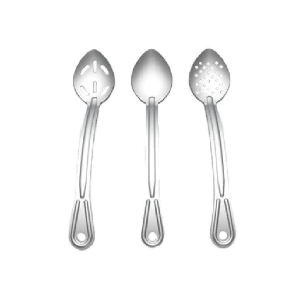 The Browne Foodservice 4776 Renaissance Basting Spoon 15"L Perforated is engineered for culinary precision and efficiency, making it a staple in professional kitchens and foodservice settings. Measuring 15 inches in length, this basting spoon is thoughtfully designed with a perforated head that allows chefs to easily strain and serve foods with precision. The heavy-duty construction ensures long-lasting durability, while its curved handle provides a comfortable grip, enhancing user experience during extended use. With a thickness of 1.75 mm, the spoon offers substantial weight and balance, adding to its robust nature. Crafted from high-quality stainless steel, it features a satin finish that not only resists corrosion but also adds an elegant touch to its aesthetic. The Browne Foodservice 4776 combines functionality with style, making it ideal for both high-volume commercial operations and gourmet settings. Whether used in bustling restaurant kitchens or catering events, this basting spoon stands out for its exceptional performance and reliable construction. Its technical attributes cater to the diverse demands of the foodservice industry, providing a practical tool that supports chefs in their daily tasks, from basting to serving, while maintaining superior hygiene standards thanks to its stainless steel composition.