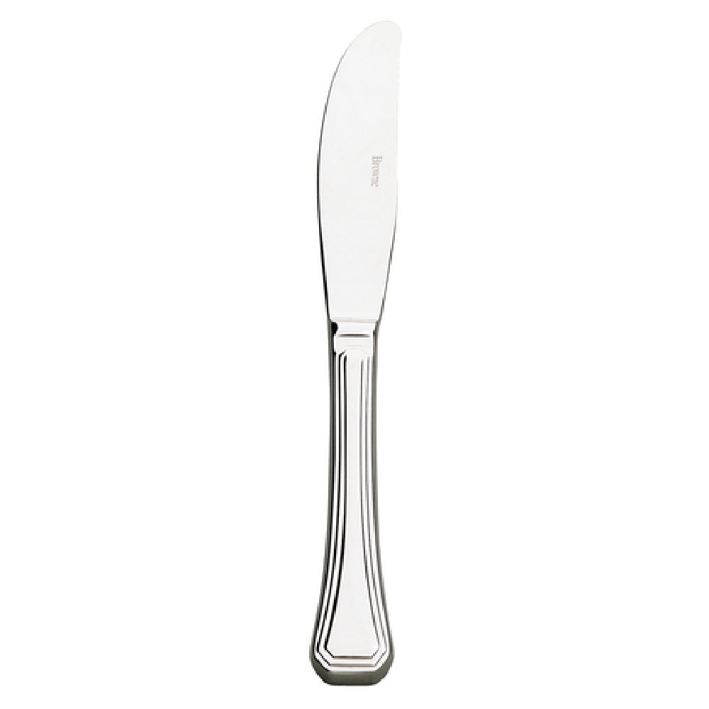 The Browne Foodservice 502021 Oxford Dessert Knife is an elegantly designed piece of cutlery, measuring 7-1/10 inches in length, crafted from durable 13/0 stainless steel. This dessert knife boasts a mirror finish, adding a touch of sophistication to any dining setting. The choice of 13/0 stainless steel ensures a high level of resistance to corrosion, making it a reliable option for high-traffic foodservice environments. Its balanced weight and ergonomic design provide a comfortable grip, enhancing the dining experience for patrons. This knife is a versatile addition to restaurant table settings, catering events, and banquet services, aligning with the aesthetic and functional needs of these markets. The mirror finish not only elevates the visual appeal of the table presentation but also ensures the knife maintains its sheen through repeated use and washing. The Browne Foodservice 502021 Oxford Dessert Knife is an exemplary choice for establishments aiming to deliver both style and durability in their tableware offerings, accommodating the needs of various segments within the hospitality industry. Its precise construction and quality materials make it an enduring asset for enhancing the dining experience.