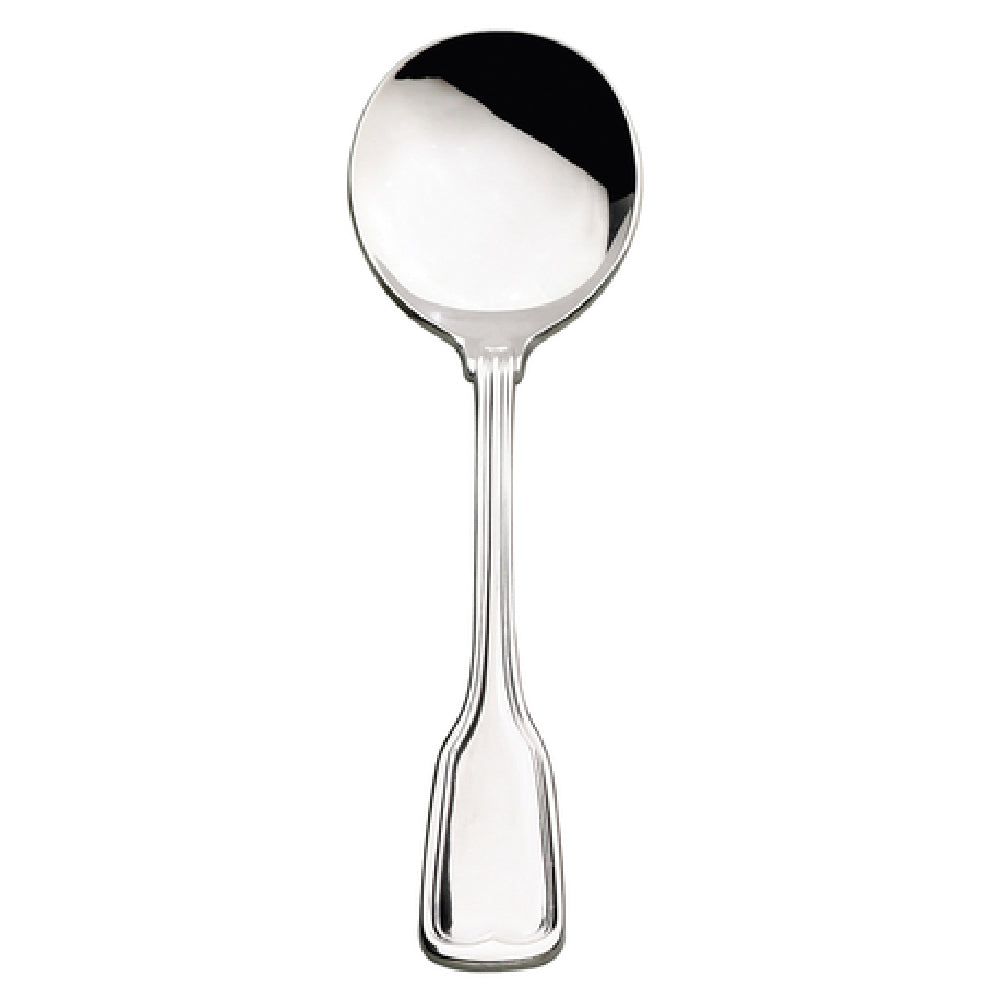 The Browne Foodservice 502213 Lafayette Soup Spoon 7" Round Bowl is a meticulously crafted utensil designed to enhance the dining experience in various foodservice environments. Measuring 7 inches, this soup spoon features a rounded bowl, offering an ideal serving size for soups and broths. Made from 18/0 stainless steel, it ensures durability and resistance to corrosion, making it a cost-effective choice for high-volume settings such as restaurants, cafeterias, and catering services. The mirror finish adds a touch of elegance, suitable for both casual and upscale dining experiences. The Lafayette Soup Spoon is part of a flatware collection that balances form and function, making it an excellent option for establishments seeking quality tableware that withstands the demands of frequent use. Its construction allows for easy stacking and handling, enhancing operational efficiency. This versatile piece of flatware is designed to meet the needs of different market segments within the foodservice industry, from chain restaurants to fine dining, offering both aesthetic appeal and functional reliability.