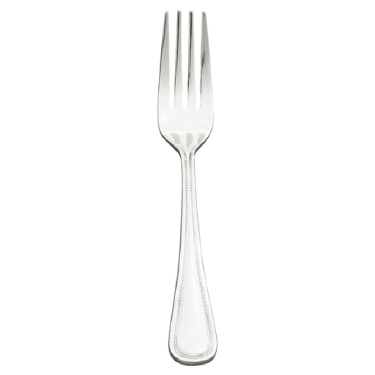 The Browne Foodservice 502903 Contour Dinner Fork 7-4/5" 18/0 Stainless Steel is a meticulously crafted utensil combining both functionality and aesthetic appeal. This dinner fork, measuring precisely 7-4/5 inches, is constructed from 18/0 stainless steel, which ensures durability and resistance to corrosion, making it a reliable choice for both commercial and residential dining settings. The mirror finish gives it a sleek and polished appearance, enhancing table presentation in upscale restaurants as well as casual dining establishments. Its balanced design caters to ergonomic comfort, making it ideal for catering services and high-volume foodservice operations where efficiency and ease of use are crucial. With its high-quality construction, the Browne Foodservice 502903 Contour Dinner Fork stands out as a versatile option, suitable for different segments of the industry, from hospitality to institutional dining services. The use of 18/0 stainless steel suggests a nickel-free composition, which is beneficial for settings that prioritize allergen-free dining options. This dinner fork's thoughtful design and robust material ensure it can withstand rigorous daily use while maintaining its elegant appearance, making it a valuable addition to any cutlery collection.