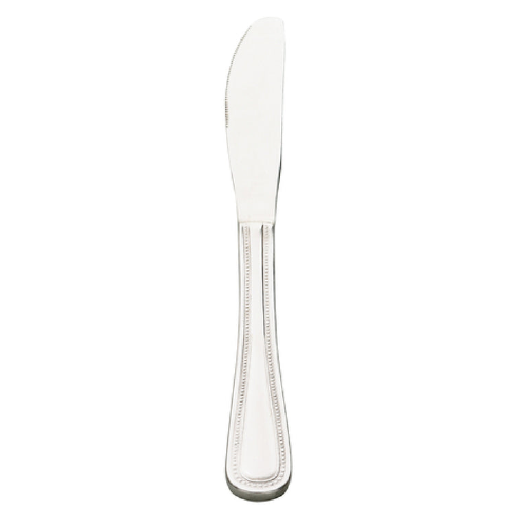 The Browne Foodservice 502911S Contour Dinner Knife is an elegantly crafted utensil, measuring 8-9/10 inches, and features a serrated edge that makes it a versatile tool for various dining needs. Manufactured from high-quality 13/0 stainless steel, this knife offers impressive durability and resistance to corrosion, ensuring long-lasting performance in any foodservice environment. Its mirror finish adds a sophisticated touch, enhancing table presentation with a sleek, modern aesthetic that appeals to upscale dining establishments. The contour design of the handle provides a comfortable grip, reducing hand fatigue during prolonged use, making it suitable for both professional chefs and home enthusiasts. This knife's unique combination of form and function makes it a valuable asset for restaurants, hotels, and catering services, where presentation and efficiency are paramount. Its reliable construction and timeless design ensure it meets the rigorous demands of busy kitchens, while also enhancing the dining experience for guests. Whether used for cutting through hearty meats or delicate pastries, the Browne Foodservice 502911S Contour Dinner Knife stands out as a superior choice for those seeking a blend of elegance and practicality in their cutlery collection.