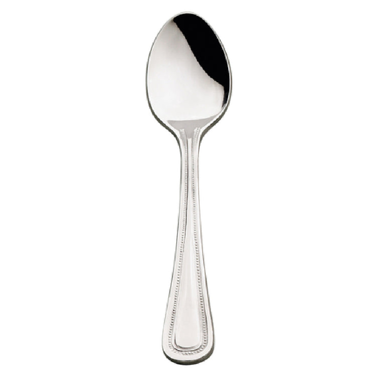 The Browne Foodservice 502925 Contour Demitasse Spoon - 5" is a meticulously crafted piece of flatware featuring 18/0 stainless steel construction, ensuring durability and resistance to wear. Its mirror finish enhances its aesthetic appeal, providing a touch of elegance to any table setting. Measuring 5 inches in length, this demitasse spoon is ideally sized for stirring espresso or enjoying small desserts, making it a versatile addition to cafes, restaurants, and hospitality venues. The design of the spoon is part of the "Contour" line, known for its sleek and modern style that complements a variety of dining decors. Due to its 18/0 stainless steel composition, this spoon is nickel-free, making it a more economical choice for establishments while still offering a high polish and satisfactory resistance to staining and corrosion. This makes it particularly advantageous for high-volume foodservice operations seeking a balance between style and budget. The Browne Foodservice 502925 Contour Demitasse Spoon offers a practical yet stylish solution for those in the food and beverage industry, meeting the demands of both aesthetic presentation and functional utility. Its specific attributes make it an excellent choice for various market segments, including coffee shops, hotels, and casual dining establishments.