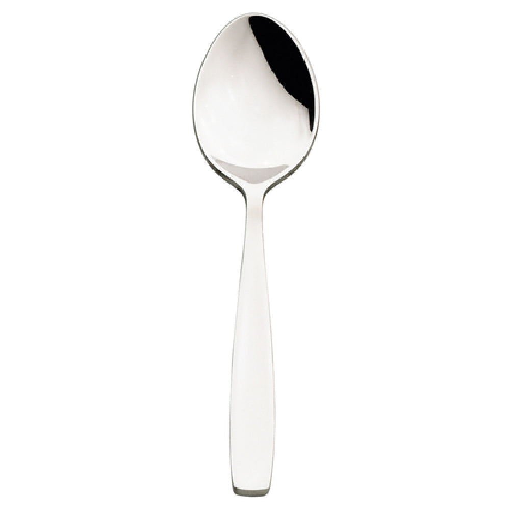 The Browne Foodservice 503025 Modena Demitasse Spoon - 5" 18/10 Stainless Steel is a meticulously crafted utensil designed for discerning foodservice professionals. This spoon features a length of 5 inches, making it the perfect size for enjoying espresso or other small portioned beverages. Its construction from 18/10 stainless steel ensures superior durability and resistance to corrosion, making it ideal for high-volume settings such as cafes and restaurants. The satin finish not only adds a touch of elegance to the table setting but also provides a smooth and comfortable grip for enhanced dining experience. This demitasse spoon is part of the Modena collection, known for its contemporary design and high-quality materials, making it a suitable choice for upscale dining establishments. Its combination of robust construction and aesthetic appeal caters to both functional and stylistic needs of various market segments within the foodservice industry. Whether used in boutique coffee shops or fine dining settings, the Browne Foodservice 503025 Modena Demitasse Spoon represents a commitment to quality and sophistication, ensuring that every sip is enjoyed to its fullest potential.