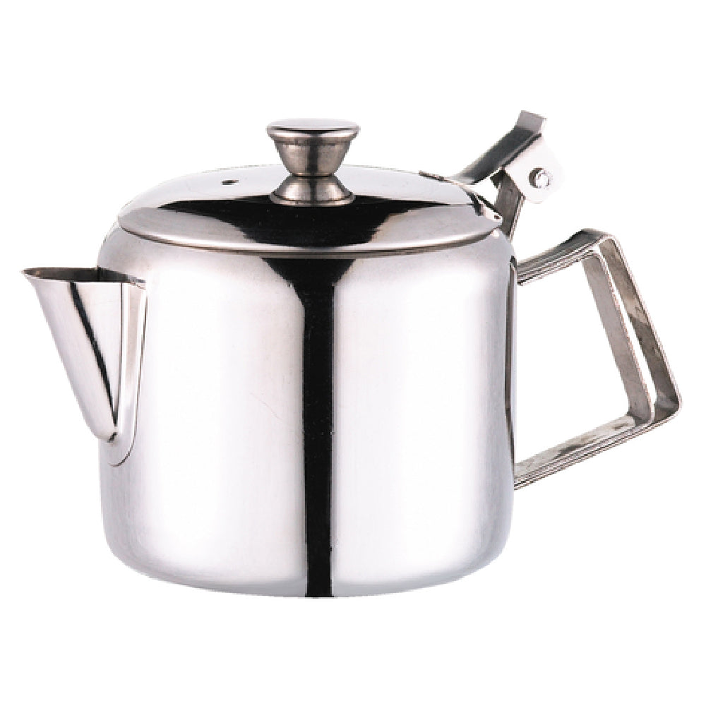 The Browne Foodservice 515000 Teapot 12 Oz. 4" X 4" is an economy-grade teapot meticulously crafted to cater to the diverse needs of the foodservice industry. This teapot features a compact design with dimensions of 4 inches by 4 inches, making it an excellent choice for establishments with limited space. With a capacity of 12 ounces, it is ideal for serving small to medium-sized servings of tea, catering well to both individual and table service. The teapot is constructed from high-quality stainless steel, ensuring durability and longevity even in high-demand environments. Its mirror finish adds a touch of elegance, making it suitable for both casual and formal settings. Additionally, the inclusion of a strainer enhances its functionality, allowing for the easy brewing of loose-leaf teas directly within the pot. This feature particularly appeals to cafes and restaurants aiming to provide an authentic tea experience. The Browne Foodservice 515000 Teapot combines practicality with style, making it a versatile addition to any foodservice operation, from quaint coffee shops to high-end dining establishments, by offering reliable performance and a sleek aesthetic.