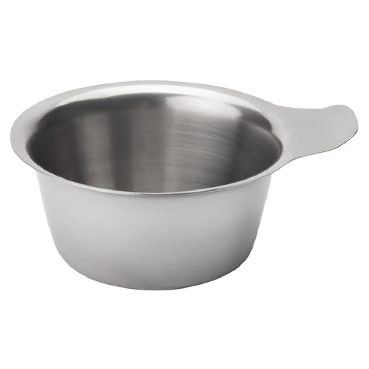 The Browne Foodservice 515048 Sauce Cup 2 Oz. is a meticulously designed condiment holder that caters to various segments within the foodservice industry. With a capacity of 2 ounces, it is perfectly sized for serving sauces, dips, or dressings, making it a versatile choice for restaurants, catering services, and hotels. The cup measures 2-9/16 inches in diameter and stands 1 inch high, offering a compact yet functional serving solution. Crafted from 18/8 stainless steel, it boasts a mirror finish exterior that adds a touch of elegance to any table setting, while the satin finish interior ensures a smooth surface for easy cleaning. The inclusion of one handle enhances usability, facilitating effortless transport and serving. Notably, the cup is stackable, promoting space efficiency in storage, an essential feature for busy commercial kitchens. Furthermore, it is dishwasher safe, ensuring convenience and efficiency in cleaning. This sauce cup embodies durability and style, making it an ideal addition to any foodservice operation looking to enhance their presentation and service efficiency.