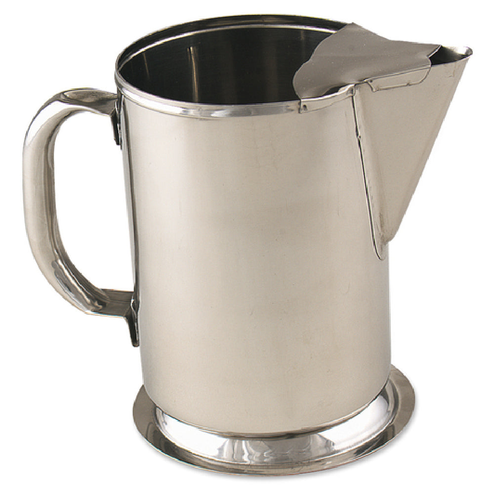 The Browne Foodservice 515080 Water Pitcher is a meticulously designed vessel, perfect for various settings within the foodservice industry. With its 64 oz. capacity, this pitcher is adept at holding a generous amount of liquid, making it suitable for both high-traffic restaurants and intimate catering events. The dimensions of 5" x 9"H provide a compact yet substantial presence on any dining table or service area, facilitating ease of use and efficient storage. Notably, the inclusion of a guard ensures spill prevention, enhancing user convenience and maintaining cleanliness in fast-paced environments. The gadroon base adds a touch of elegance and stability, while the stainless steel construction guarantees durability and resistance to wear, even with frequent use. This water pitcher seamlessly combines functionality with aesthetic appeal, making it an attractive choice for upscale dining establishments and banquet services. Its robust features cater to diverse market segments, providing reliable service for professional settings that demand both style and efficiency in their beverage service solutions.