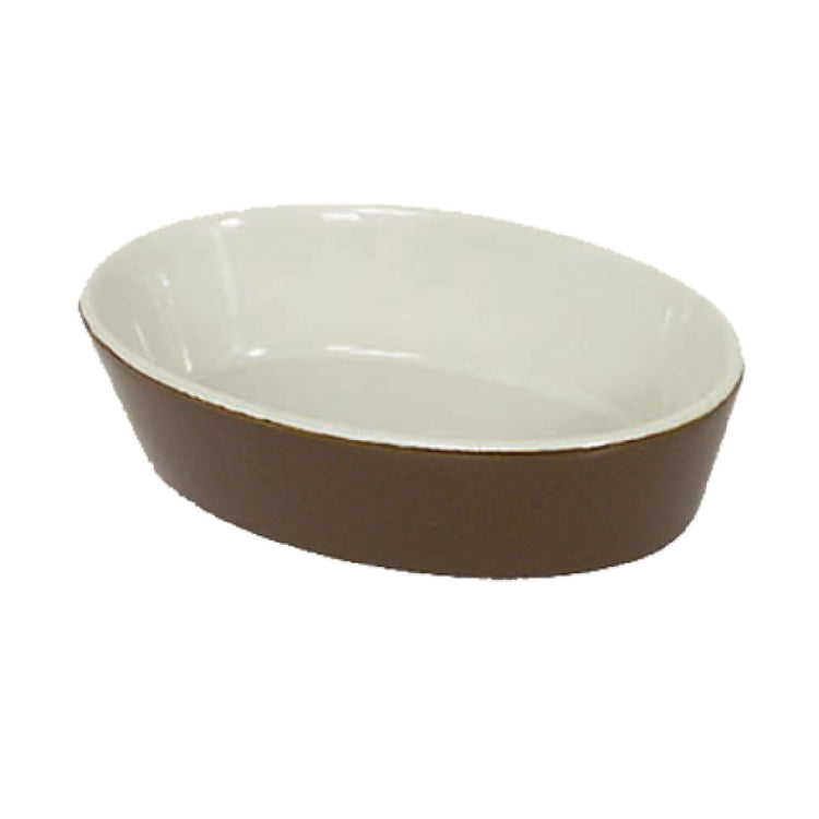 The Browne Foodservice 564004BR Baker 9 Oz. 6" X 4" X 1-1/2" is a versatile stoneware baking dish designed for both professional and home kitchens. With its 9-ounce capacity and dimensions of 6 inches by 4 inches by 1-1/2 inches, this oval baker is ideal for preparing individual servings or small dishes. Crafted from durable stoneware, it provides excellent heat retention and even cooking results, making it perfect for a variety of baking needs. The brown finish adds a touch of elegance and warmth to any kitchen or dining setup. Its compact size offers easy handling and storage, allowing chefs and home cooks to maximize kitchen space. The Browne Foodservice 564004BR Baker is particularly valuable for small-scale food service operations, such as cafes or bistros, where space and efficiency are crucial. Its robust construction ensures longevity, making it a reliable choice for repeated use in high-demand kitchens. This product represents a practical solution for those seeking a combination of style, functionality, and durability in their bakeware, catering to diverse market segments that include professional chefs, caterers, and culinary enthusiasts alike, all benefiting from its efficient and aesthetically pleasing design.