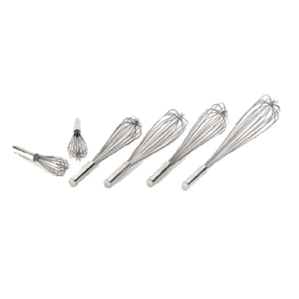 The Browne Foodservice 571120 Deluxe French Whip 20" Epoxy Filled is a meticulously crafted kitchen utensil designed for both professional chefs and culinary enthusiasts who demand precision and efficiency in their food preparation. This deluxe French whip is distinguished by its 20-inch length, making it an ideal tool for whisking and blending in larger mixing bowls or deep pots. It features eight soldered wires, which provide exceptional strength and durability, ensuring it withstands rigorous use over time. The stainless steel construction offers resistance to corrosion and rust, promoting longevity and easy maintenance. A unique aspect of this whip is its epoxy-filled handle, which not only reinforces the whip’s structural integrity but also adds a layer of comfort and safety by preventing any moisture or bacterial infiltration into the handle. This design aspect makes it particularly appealing for foodservice operations that prioritize hygiene and ease of cleaning. The Browne Foodservice 571120 Deluxe French Whip is an essential tool for any kitchen setting, whether in a bustling restaurant, a cozy café, or a home kitchen, offering reliability and quality for various culinary applications such as whisking eggs, creams, or sauces to perfection.