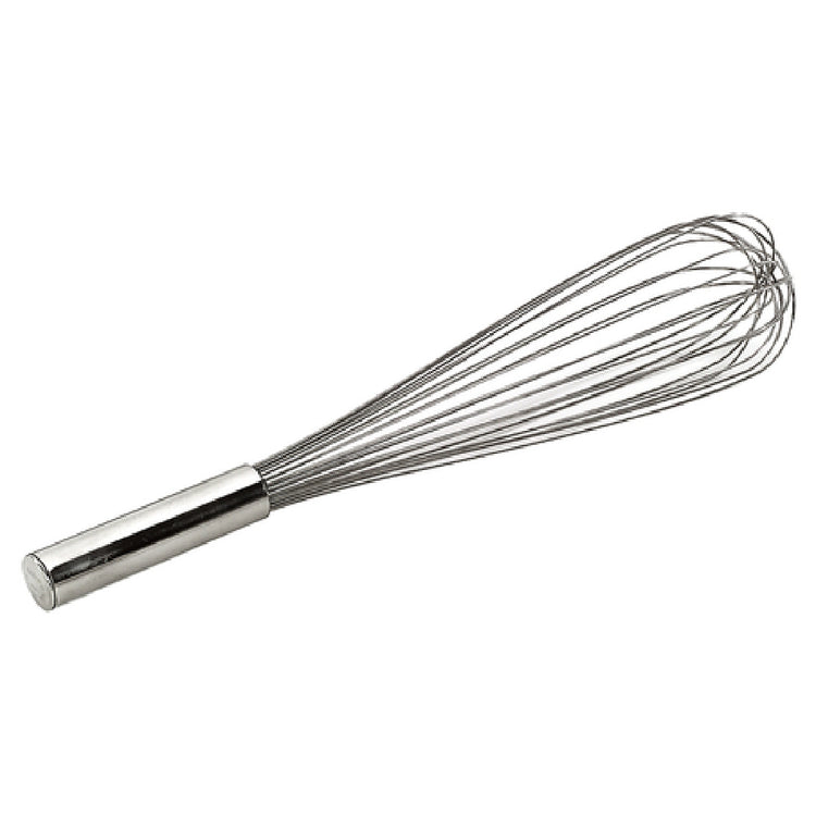 The Browne Foodservice 571218 Deluxe Piano Whip 18" Epoxy Filled is a high-quality kitchen tool designed to meet the rigorous demands of professional chefs and culinary enthusiasts alike. Crafted with precision, this piano whip features 11 soldered wires made from durable stainless steel, providing exceptional strength and flexibility for a variety of mixing tasks. Its 18-inch length offers extended reach, making it ideal for large mixing bowls and deep pots commonly used in commercial kitchens. One of the standout features of this whip is its epoxy-filled handle, engineered to enhance hygiene by preventing the accumulation of food particles and moisture, thus reducing the risk of bacterial growth. This innovative design also adds to the whip's durability, ensuring it withstands heavy usage and frequent cleaning. The Deluxe Piano Whip's robust construction makes it an invaluable tool in restaurants, bakeries, and catering services, catering to segment markets that prioritize efficiency and reliability in their food preparation processes. Whether used for whipping cream, beating eggs, or blending batters, the Browne Foodservice 571218 Deluxe Piano Whip delivers consistent performance, making it a versatile and indispensable addition to any foodservice operation.