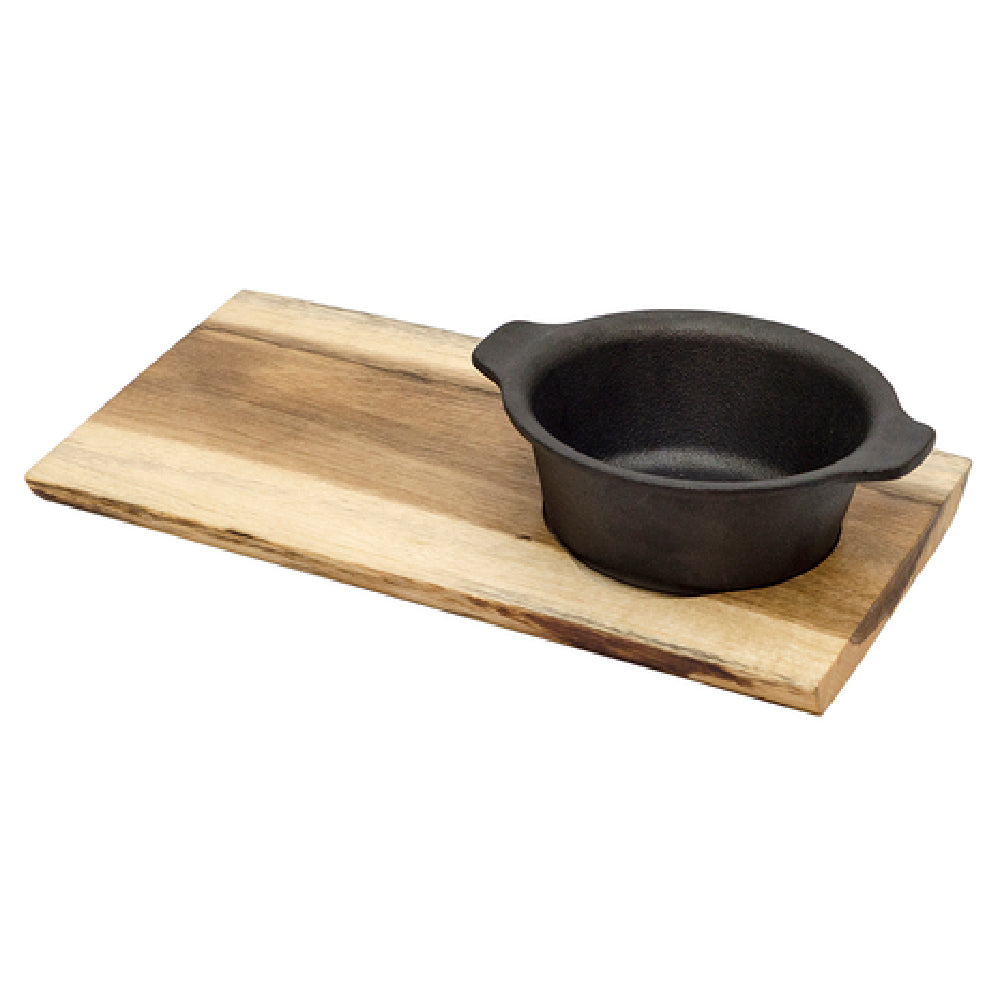 The Browne Foodservice 571267 Serving Board 11-4/5" X 6-7/10" Rectangular is a versatile and stylish addition to any food service establishment. This board, crafted from durable acacia wood, features a food-safe protective mineral oil sealant that ensures longevity and maintains its aesthetic appeal. Its reversible design offers a smooth surface on one side, while the other side includes a round well, specifically designed to accommodate Thermalloy® mini cast iron or a range of serving dishes. This multifunctional feature makes it an excellent choice for restaurants, cafes, and catering businesses looking to enhance their presentation. The precise dimensions of 11-4/5 inches by 6-7/10 inches provide ample space for elegant food display, while the natural grain of the acacia wood adds a rustic charm that complements a variety of dining settings. This serving board's robust construction and unique features make it a valuable asset in both casual and fine dining environments. Its ability to support diverse culinary presentations with ease and style makes the Browne Foodservice 571267 Serving Board a distinctive tool for chefs and foodservice professionals who prioritize both functionality and aesthetic in their service ware.