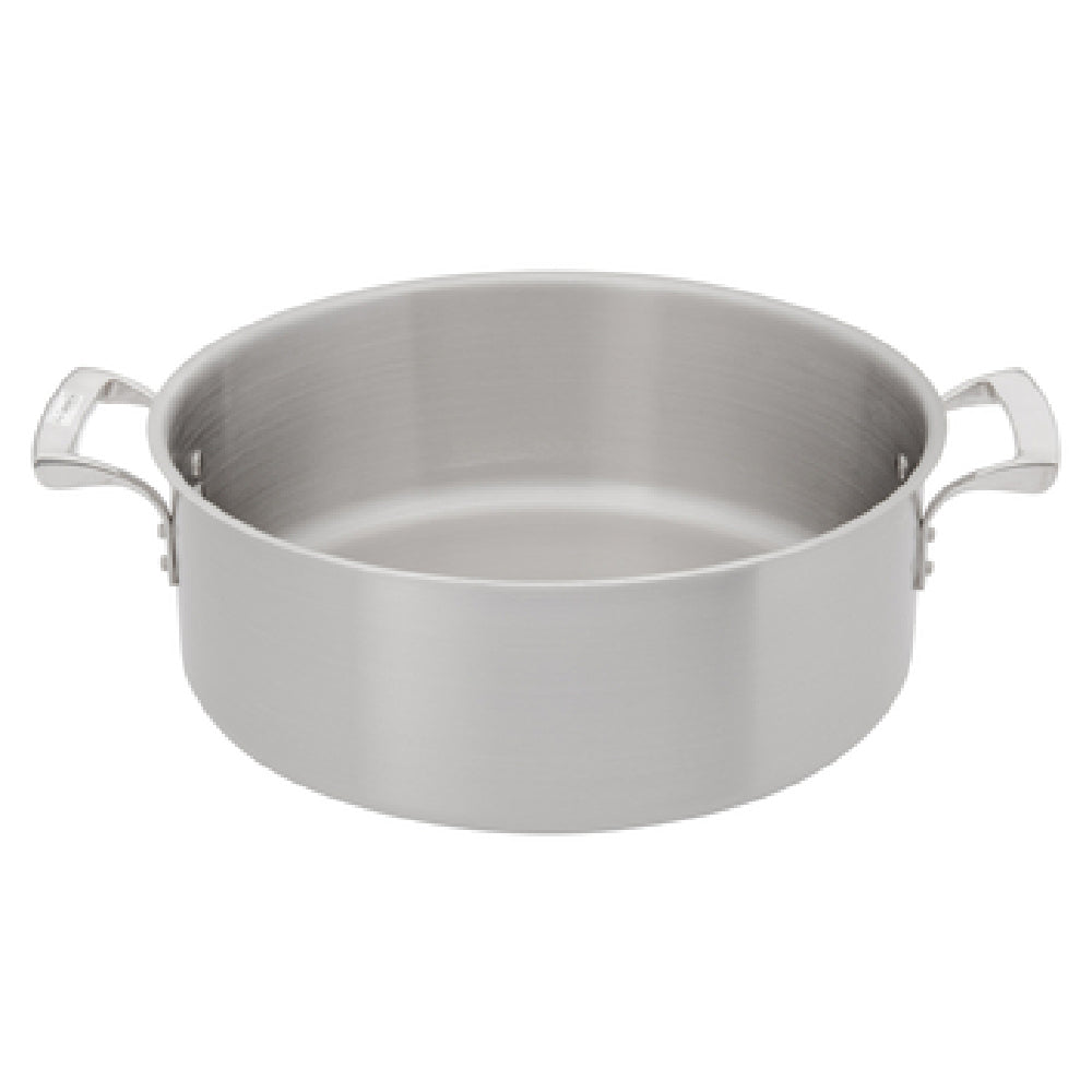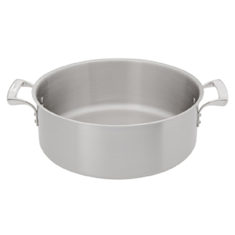 The Browne Foodservice 5724019 Thermalloy® Brazier 20 Qt. 15-4/5" X 5-4/5"H is a versatile and durable piece of cookware designed to meet the diverse needs of professional kitchens. This brazier is crafted from stainless steel with a 1/4" aluminum core, ensuring even heat distribution and superior cooking performance. Operating seamlessly with gas, electric, ceramic, halogen, and induction heat sources, this brazier is adaptable to various cooking environments. Its generous 20-quart capacity makes it suitable for preparing large quantities of food, an essential feature for busy foodservice establishments. The brazier is equipped with two oversized, stay-cool hollow cast riveted handles, providing a secure and comfortable grip during use. While the brazier does not come with a cover, its natural finish enhances its aesthetic appeal and ease of cleaning. The dimensions of 15-4/5" in diameter and 5-4/5" in height make it a compact yet spacious choice for any culinary application. This product meets NSF standards, which assures its compliance with public health and safety regulations. The cash and carry packaging option further enhances its convenience for purchase and transport. The Browne Foodservice Thermalloy® Brazier is an invaluable asset for professional chefs seeking reliability and efficiency in their kitchen equipment.