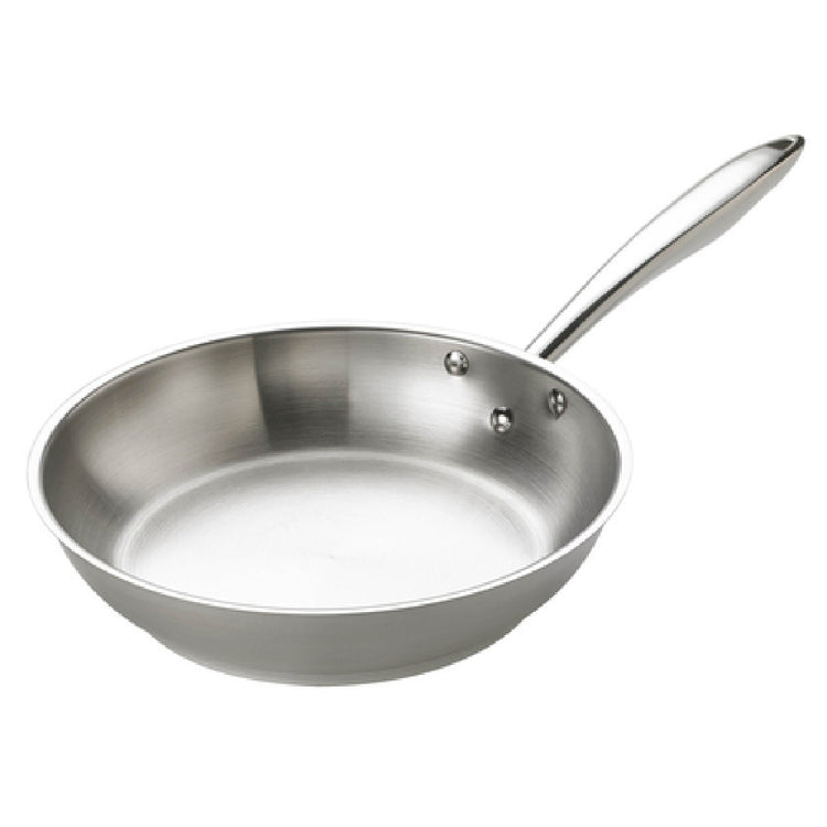 The Browne Foodservice 5724051 Thermalloy® Fry Pan - 11" Dia. X 2" Without Cover is a versatile piece of cookware designed for professional kitchens. This high-quality fry pan features a generous 11-inch diameter and a depth of 2 inches, making it an excellent choice for a variety of cooking tasks. Engineered for optimal performance, the pan is crafted from stainless steel with a 1/4" aluminum core, ensuring even heat distribution and exceptional durability. The pan's stay-cool hollow cast riveted handle provides a secure, comfortable grip, enhancing safety and control during use. A standout feature of this fry pan is its compatibility with multiple heat sources, including gas, electric, ceramic, halogen, and induction cooktops, offering adaptability across different cooking environments. The natural finish of the pan contributes to its professional appearance and ease of maintenance. Certified by NSF, it meets stringent public health and safety standards, making it a reliable choice for commercial settings. Designed with cash and carry packaging, this fry pan is convenient for bulk purchasing and immediate use. Ideal for chefs and foodservice professionals, the Browne Foodservice 5724051 Thermalloy® Fry Pan delivers on performance, versatility, and quality.