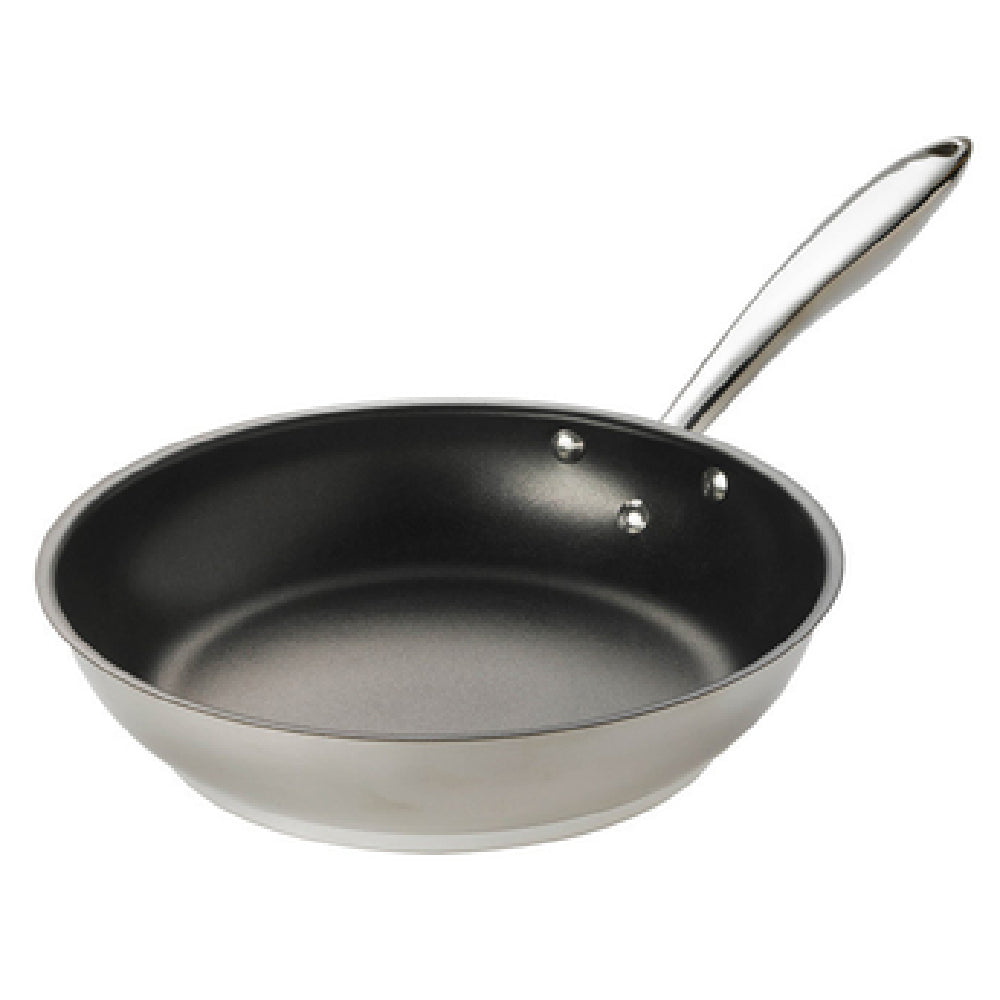 The Browne Foodservice 5724060 Thermalloy® Deluxe Fry Pan 9-1/2" Dia. X 2" Without Cover is a premium kitchen essential, crafted for culinary professionals and home cooks alike. This fry pan boasts a diameter of 9-1/2 inches and a depth of 2 inches, providing ample space for a variety of cooking applications. It features a stay-cool hollow cast riveted handle, ensuring safe and comfortable handling during use. The pan's construction includes a stainless steel exterior, paired with a 1/4-inch aluminum core, which enhances its heat conductivity and distribution properties. The Excalibur® non-stick coating facilitates easy food release and simple cleaning, making it an ideal choice for those seeking efficiency in the kitchen. The Thermalloy® Deluxe Fry Pan is versatile, operating seamlessly with all types of cooktops: gas, electric, ceramic, halogen, and induction. This adaptability makes it suitable for various culinary environments, from bustling restaurant kitchens to home cooking. Additionally, it is NSF certified, affirming its compliance with high public health and safety standards. Packaged for cash and carry, this fry pan embodies both convenience and quality, appealing to a wide range of foodservice industry segments.