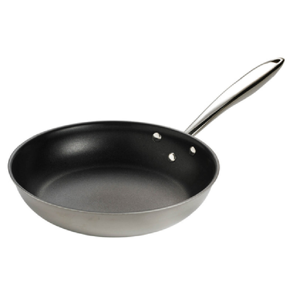The Browne Foodservice 5724096 Thermalloy® Fry Pan 8" X 1-1/2" Without Cover is a versatile and durable kitchen essential designed to meet the demanding needs of various foodservice environments. This fry pan boasts an 8-inch diameter and a depth of 1-1/2 inches, providing ample cooking space for a variety of culinary applications. Constructed with tri-ply stainless steel featuring an aluminum core, it ensures even heat distribution and retention, which is crucial for precision cooking. Equipped with an Excalibur® non-stick coating, this fry pan facilitates easy food release and effortless cleaning. The handle is securely attached with off-set rivets, enhancing the pan's durability and ensuring a firm grip during use. This fry pan is compatible with a wide range of heat sources, including gas, electric, ceramic, halogen, and induction, making it an adaptable choice for different kitchen setups. Additionally, its NSF certification underscores its compliance with strict public health and safety standards. Packaged in a convenient cash & carry format, the Browne Foodservice 5724096 Thermalloy® Fry Pan combines functionality and reliability, making it an invaluable addition to any professional kitchen, from bustling restaurants to catering operations.