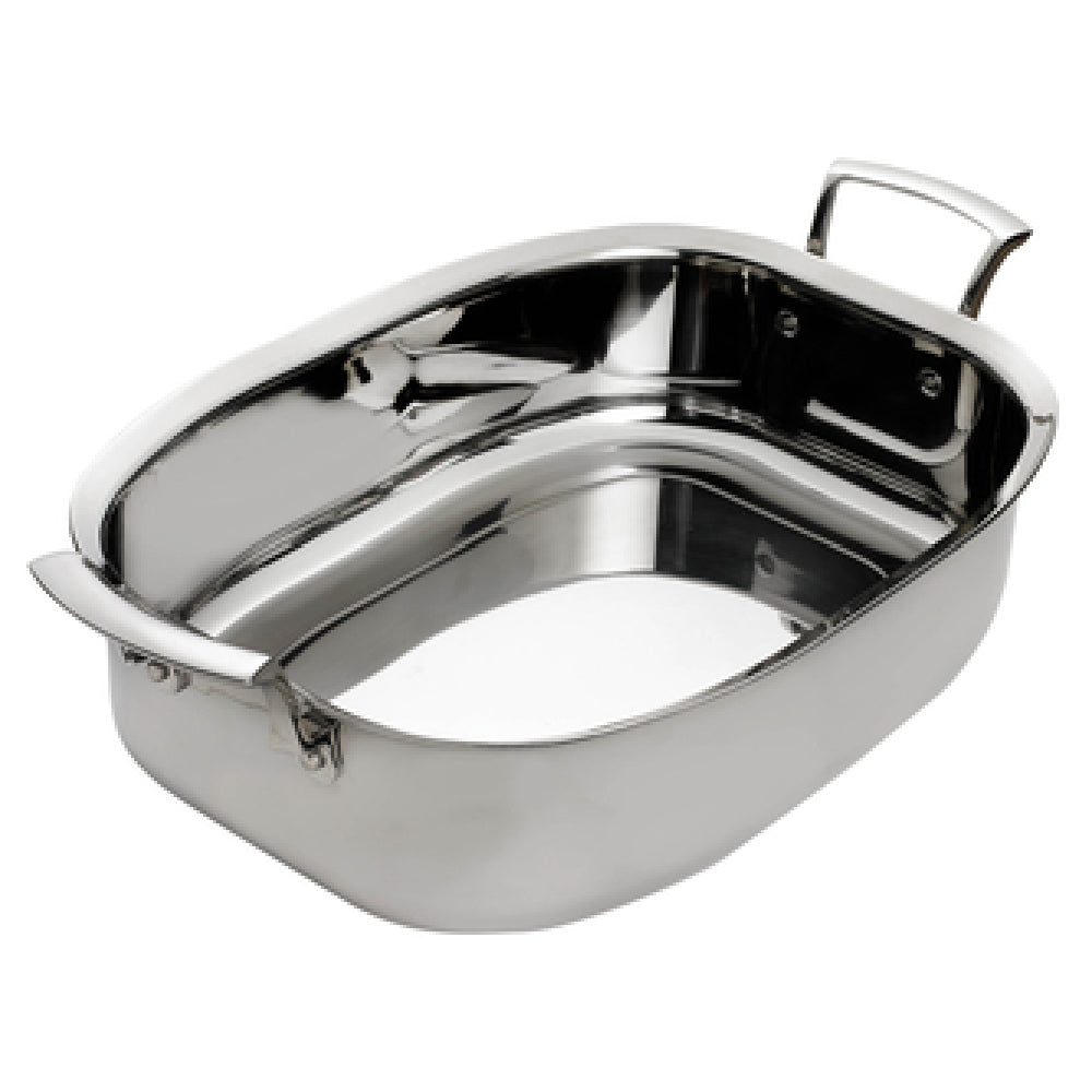 The Browne Foodservice 5724177 Thermalloy® Roast Pan 2.6 Qt. (2.46 Liter) is a versatile kitchen essential, tailored for various cooking environments. With its dimensions of 12" x 10-2/5" x 2", this oval roast pan is designed to cater to diverse culinary needs, whether in professional kitchens or home settings. The pan's construction features tri-ply stainless steel with an aluminum core, ensuring even heat distribution and durability. This material composition makes it compatible with multiple heat sources - gas, electric, ceramic, halogen, and induction, adding to its adaptability. The roast pan includes two riveted ergonomic handles, enhancing ease of handling and safety during use. Although it comes without a cover, its natural finish and NSF certification highlight its quality and compliance with health standards, making it a reliable choice for chefs and cooking enthusiasts alike. Packaged for cash and carry, the Browne Foodservice 5724177 Thermalloy® Roast Pan is an excellent addition to any kitchen, promising functionality and longevity across different cooking scenarios.
