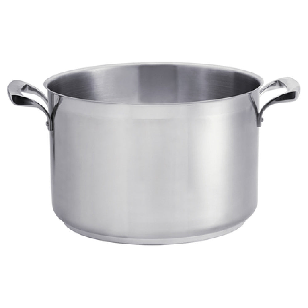 The Browne Foodservice 5724188 Thermalloy® Sauce Pot is an 11-quart capacity culinary tool designed for versatility and efficiency across various cooking environments. With dimensions of 11 inches in diameter and 7 inches in height, this stainless steel pot features a natural finish that facilitates even heat distribution, thanks to its 1/4-inch aluminum core. The absence of a cover allows for flexibility in use, while the stay-cool hollow cast riveted handles ensure safe handling during cooking. Engineered to operate seamlessly with gas, electric, ceramic, halogen, and induction cooktops, this sauce pot is adaptable to a wide range of heat sources, making it an invaluable asset in commercial and home kitchens alike. The NSF certification highlights its compliance with stringent safety and sanitation standards, ensuring a reliable cooking experience. Packaged in cash and carry format, it emphasizes convenience for immediate use. The Browne Foodservice 5724188 Thermalloy® Sauce Pot combines durability with functionality, catering to diverse culinary needs within the foodservice industry.