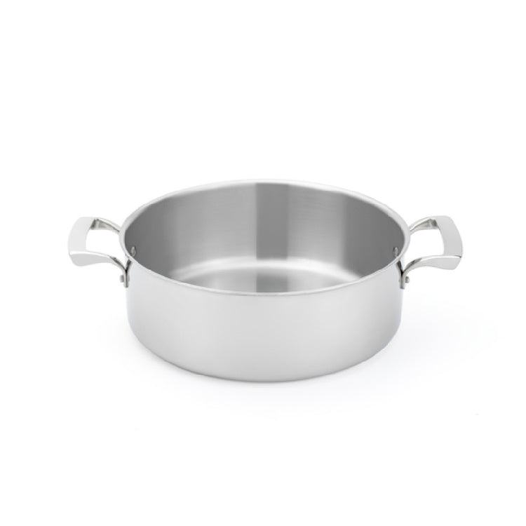 The Browne Foodservice 5724226 Thermalloy® Sauce Pot is a versatile kitchen essential with a capacity of 6 quarts, designed to meet the demands of various foodservice environments. With dimensions of 11 inches in diameter and 4 inches in height, this sauce pot is crafted from tri-ply stainless steel featuring an aluminum core, which ensures even heat distribution and efficient cooking. The satin finish interior and mirror finish exterior not only enhance its aesthetic appeal but also simplify cleaning and maintenance. Equipped with a stay-cool hollow cast riveted handle and additional helper handles, this pot ensures safety and ease of maneuvering, even under high-temperature conditions. The Browne Thermalloy® Sauce Pot is compatible with multiple heat sources, including gas, electric, ceramic, halogen, and induction stovetops, making it a flexible tool for any kitchen setup. Although it comes without a cover, its robust construction and NSF certification highlight its adherence to public health standards, ensuring quality and reliability. This sauce pot is ideal for professional chefs and culinary enthusiasts looking for a reliable, high-performing cooking vessel that can seamlessly integrate into their existing kitchen equipment lineup. Its thoughtful design and practicality make it a valuable addition to any foodservice operation.