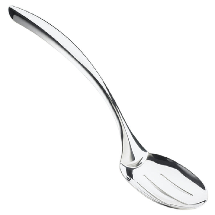 The Browne Foodservice 573174 Eclipse Serving Spoon 13" is a meticulously designed utensil combining functionality with ergonomic comfort. Crafted from 18/8 stainless steel, this serving spoon features a mirror finish that not only enhances its aesthetic appeal but also ensures durability and resistance to corrosion, making it a valuable tool in any foodservice setting. The ergonomic design is highlighted by a tapered stay-cool curved hollow handle, which provides a comfortable grip, reducing fatigue during extended use, thus catering to the needs of busy chefs and servers. Its slotted design allows for efficient draining of liquids, making it particularly useful in serving dishes with broths or sauces. Measuring 13 inches in length, the spoon offers ample reach for serving in larger containers or buffet settings. The integration of these features makes the Browne Foodservice 573174 Eclipse Serving Spoon an excellent choice for restaurants, catering services, and hospitality industries where efficiency, durability, and ease of use are paramount. Its thoughtfully engineered design supports high-volume, fast-paced environments, ensuring seamless service delivery while maintaining high standards of presentation and hygiene. This serving spoon embodies a commitment to quality and innovation, providing a reliable solution for professional culinary applications.