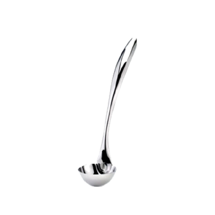 The Browne Foodservice 573184 Eclipse Serving Ladle is a meticulously crafted kitchen tool, designed to meet the precise needs of foodservice professionals. With a capacity of 1 oz., this ladle is perfect for serving measured portions, ensuring consistency across dishes. Its 10-inch length is ideal for reaching into deep pots and serving vessels, enhancing its functionality in busy culinary environments. The ergonomic, tapered stay-cool curved hollow handle offers a comfortable grip, reducing fatigue during prolonged use. The ladle is constructed from 18/8 stainless steel, known for its durability and resistance to corrosion, making it a reliable choice for long-term use. Its mirror finish not only adds an elegant touch to the kitchen but also facilitates easy cleaning. This serving ladle is a versatile tool that finds application in a variety of settings, from high-end restaurants to catering services and institutional kitchens, providing a blend of practicality and style. It stands out for its balance of form and function, catering to the needs of different segment markets within the foodservice industry, where precision and efficiency are paramount.