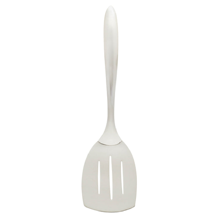 The Browne Foodservice 573272 Eclipse Turner 14" Ergonomic is a meticulously crafted kitchen tool engineered for professional chefs and home cooks who value precision and comfort. This turner features a 14-inch length, providing ample reach for various cooking tasks. Constructed from high-quality 18/8 stainless steel, it boasts a satin finish that enhances both its durability and aesthetic appeal. The turner's unique ergonomic design includes a slotted, tapered blade that allows for efficient draining of excess oils or liquids while flipping or lifting food items. Its stay-cool curved hollow handle is designed to provide superior grip and comfort, minimizing hand fatigue during extended use. This thoughtful design is particularly beneficial for busy commercial kitchens, catering services, and culinary enthusiasts who demand both functionality and style from their kitchen tools. The Browne Foodservice 573272 Eclipse Turner seamlessly integrates into any foodservice environment, offering unparalleled ease of use and reliability. Its distinctive combination of ergonomic features and high-grade materials makes it an indispensable tool in achieving professional cooking results while maintaining user comfort and safety.