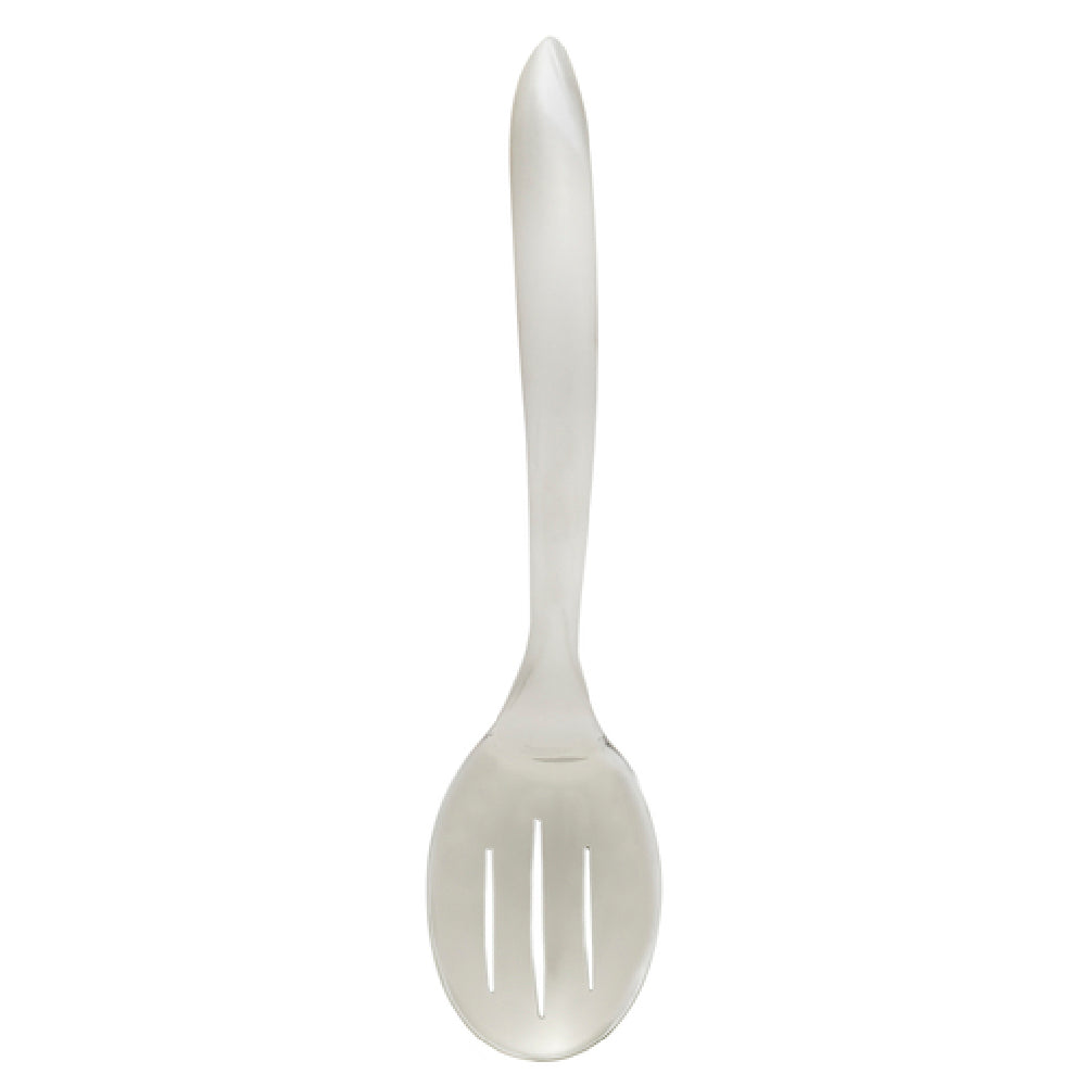 The Browne Foodservice 573281 Eclipse Serving Spoon 10" Ergonomic is a highly specialized utensil designed for diverse culinary environments, particularly those requiring precise and efficient serving solutions. The spoon features an ergonomic design that enhances comfort and usability, making it an excellent choice for professional kitchens and food service settings. It is constructed from 18/8 stainless steel, ensuring durability and resistance to corrosion, which is vital for maintaining hygiene and longevity in rigorous kitchen conditions. The slotted spoon design facilitates the effective draining of liquids, making it ideal for serving dishes such as pasta or vegetables. A satin finish adds a touch of elegance while also resisting fingerprints and smudges. The tapered stay-cool curved hollow handle is not only aesthetically pleasing but also functional, providing a secure grip while remaining cool to touch, even during extended use. With a length of 10 inches, this serving spoon strikes a balance between reach and control, catering to a variety of serving tasks. This product's thoughtful design and superior materials make it a valuable tool for chefs and food service professionals seeking reliable and effective serving instruments, ensuring both performance and style are delivered in every use.