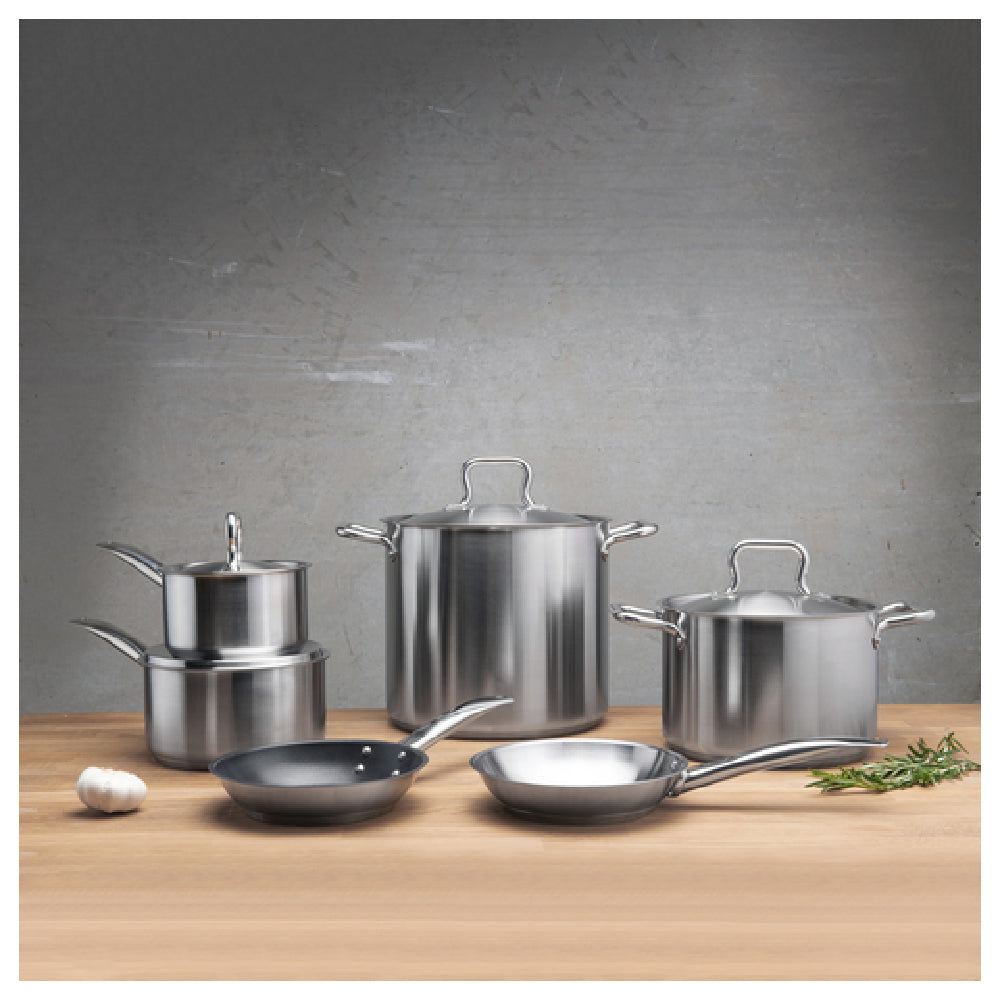 The Browne Foodservice 5734051 Elements Fry Pan is a versatile kitchen essential combining durability with advanced functionality, ideal for a wide range of cooking applications. This fry pan boasts an 11-inch diameter and 2-inch height, providing ample cooking space for various dishes. Its construction includes a riveted hollow cool touch handle, ensuring a safe and comfortable grip while minimizing heat transfer during use. The pan's compatibility with multiple heat sources - gas, electric, ceramic, halogen, and induction cooktops - offers unparalleled flexibility for chefs in any kitchen setting. Additionally, its oven-safe design extends its versatility, allowing for seamless transition from stovetop to oven. The 4mm tri-ply base, made from high-quality stainless steel, ensures even heat distribution and optimal cooking performance. Featuring a natural finish, this fry pan is both aesthetically pleasing and practical for everyday use. Certified by NSF, the Browne Foodservice 5734051 Elements Fry Pan meets rigorous public health and safety standards, making it a reliable choice for professional kitchens. Its robust design and comprehensive features make it a valuable asset for chefs seeking consistent, high-quality results in their culinary endeavors.