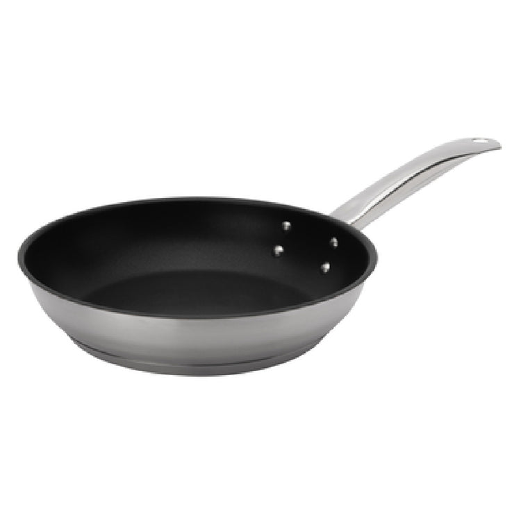 The Browne Foodservice 5734058 Elements Fry Pan is an 8-inch diameter cooking essential, expertly crafted for both home cooks and professional chefs. Its riveted hollow cool touch handle ensures safe handling, even during high-heat cooking sessions. This versatile fry pan is compatible with multiple cooktop types, including gas, electric, ceramic, halogen, and induction, reflecting its adaptability across various kitchen environments. With the capability to be used in the oven, this pan extends its functionality beyond traditional stovetop applications. The 4mm tri-ply base enhances heat distribution and retention, ensuring an even cooking experience. Constructed from durable stainless steel, the pan is coated with Teflon Select® non-stick, which facilitates easy cleaning and healthier cooking with less oil. The NSF certification guarantees adherence to public health and safety standards, making it a reliable choice for professional food service settings. The Browne Foodservice 5734058 Elements Fry Pan combines robust construction with versatile functionality, making it a valuable addition to any kitchen, from bustling restaurant settings to home culinary adventures. Its thoughtful design addresses the needs of various market segments, ensuring efficient performance and durability in demanding cooking environments.
