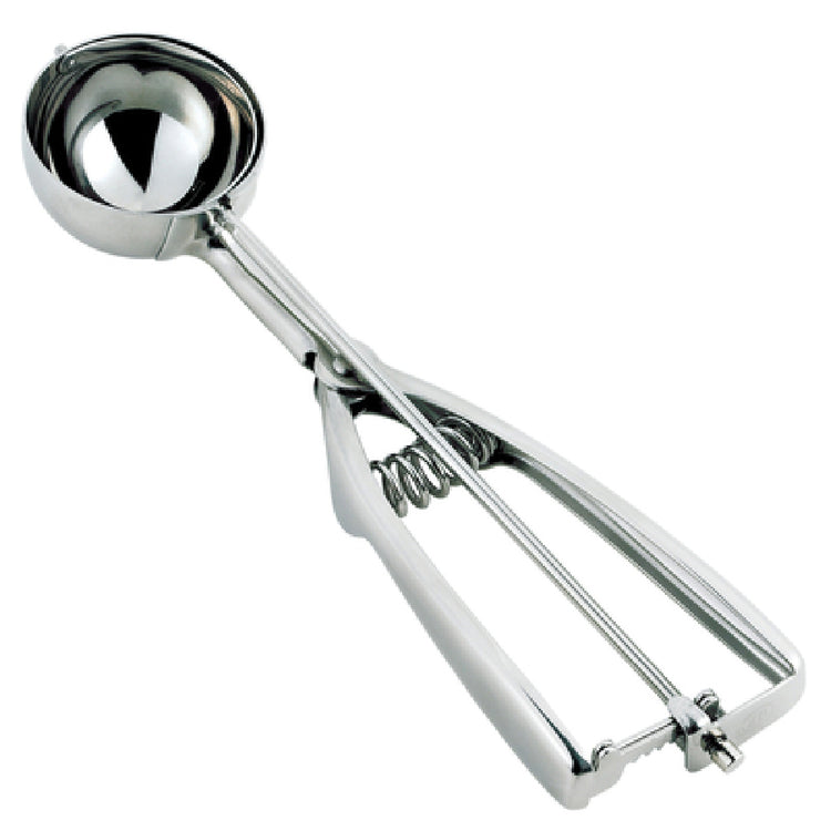 The Browne Foodservice 5734100 Disher Size 100-0.4 Oz. Twin Grip is a precision kitchen tool designed for both commercial and home culinary environments. This disher is specifically engineered with a size 100 scoop capacity, precisely measuring 0.4 ounces, making it ideal for portion control and consistency in food presentation. Featuring a twin grip design, this disher ensures a comfortable and secure hold during repetitive use, enhancing user efficiency and reducing hand fatigue. The sizing is clearly stamped on the blade, allowing for quick identification and streamlining kitchen operations. Constructed from durable stainless steel, this disher promises longevity and resistance to corrosion, making it suitable for rigorous daily use in fast-paced foodservice settings. Individually boxed, it provides a professional presentation and protection during storage and transport. The Browne Foodservice 5734100 Disher is an essential tool for chefs and foodservice professionals who require precision and reliability in their kitchen utensils, serving diverse market segments such as restaurants, catering services, and institutional dining facilities. Its robust construction and thoughtful design make it a standout choice for those seeking a balance of functionality and durability in their culinary operations.