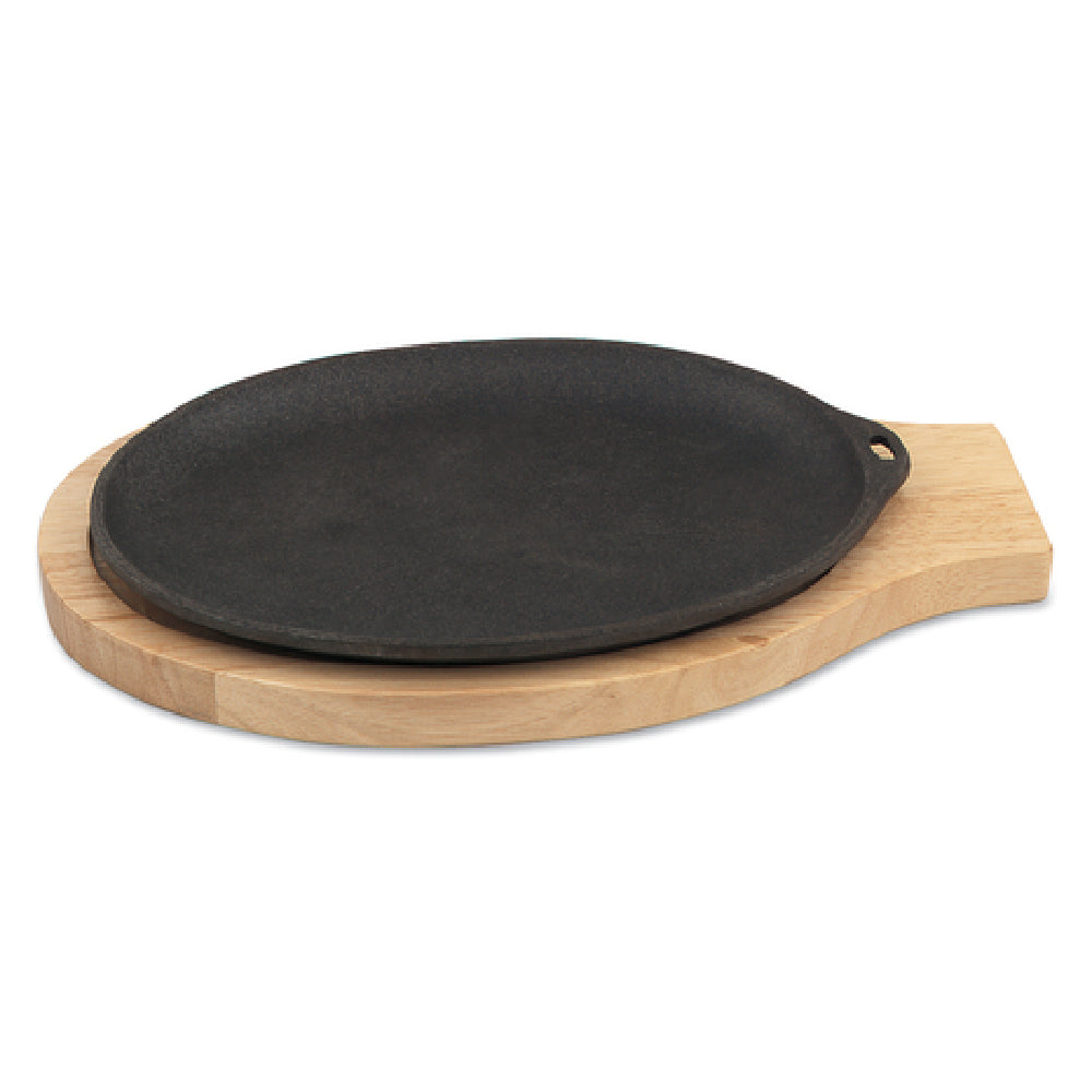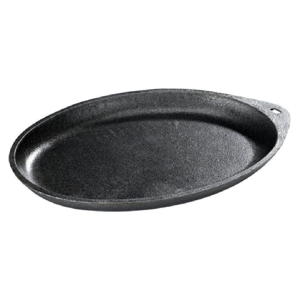 The Browne Foodservice 573720 Skillet is an expertly designed culinary tool tailored for both professional and home kitchens. With overall dimensions of 10-3/5" x 7-2/5" x 9/10" and a well size of 9-1/4" x 6-4/5" x 3/4", this oval-shaped skillet balances generous cooking capacity with compact storage. Notably, it is crafted without a handle, enhancing its utility for versatile cooking and serving applications. The skillet is compatible with various heat sources, including gas, electric, ceramic, halogen, induction, ovens, and grills, demonstrating its adaptability across different kitchen environments. Constructed from high-quality, pre-seasoned cast iron, it provides exceptional heat retention and distribution, ensuring evenly cooked meals. The non-stick surface, free from PFOA and PTFE, promotes healthier cooking and easy cleaning, appealing to health-conscious chefs and home cooks alike. Its sleek black finish adds a touch of elegance to any kitchen setting. Specifically designed for compatibility with BG78U & 573706 units, this skillet is a valuable addition to any culinary toolkit, whether used in a professional foodservice establishment or a home kitchen. Its robust construction and versatile functionality cater to a wide range of culinary needs and preferences.