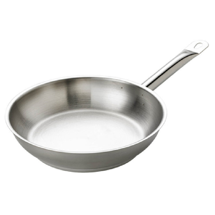 The Browne Foodservice 573772 Thermalloy® Standard Fry Pan 11" Dia. X 2" Without Cover is a versatile cooking tool designed for professional kitchens. This fry pan features a sturdy stainless steel construction with a 1/4" aluminum core, enhancing heat distribution and ensuring consistent cooking results. Measuring 11 inches in diameter and 2 inches deep, it offers ample space for a variety of frying tasks. The stay-cool hollow cast riveted handle provides a secure, comfortable grip, reducing the risk of burns during use. This fry pan is compatible with a range of heat sources, including gas, electric, ceramic, halogen, and induction, making it adaptable to different cooking environments. The natural finish not only contributes to its aesthetic appeal but also aids in effortless food release and cleaning. Certified by NSF, it meets the stringent standards for public health protection. Packaged for cash and carry, the Browne Foodservice 573772 Thermalloy® Standard Fry Pan is an excellent choice for chefs and foodservice professionals seeking reliability and performance in their cooking equipment. Its robust features make it a valuable addition for those in the restaurant industry, catering services, and culinary institutions.