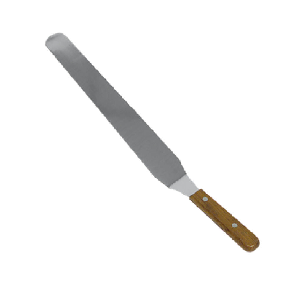 The Browne Foodservice 573810 Spatula 10" x 1-1/2" OAL Offset is a high-quality kitchen tool designed for precision and durability, featuring an 18/8 tempered stainless steel blade that ensures exceptional strength and resistance to corrosion. The blade measures 10 inches in length and 1-1/2 inches in width, offering a perfect balance of size for a variety of culinary tasks. This spatula is uniquely offset, providing enhanced leverage and control, making it an essential tool for both professional chefs and home cooks. The handle is crafted from walnut wood and reinforced with rivets, offering not only an elegant appearance but also a comfortable and secure grip during use. This spatula is perfectly suited for tasks that require a delicate touch or meticulous flipping, such as turning fish fillets, serving delicate pastries, or performing intricate plating presentations. The combination of its tempered stainless steel blade and ergonomic wooden handle makes this spatula a versatile instrument that caters to the needs of different segments within the foodservice industry, from high-end restaurant kitchens to home culinary enthusiasts who appreciate the blend of functionality and style in their cooking tools.