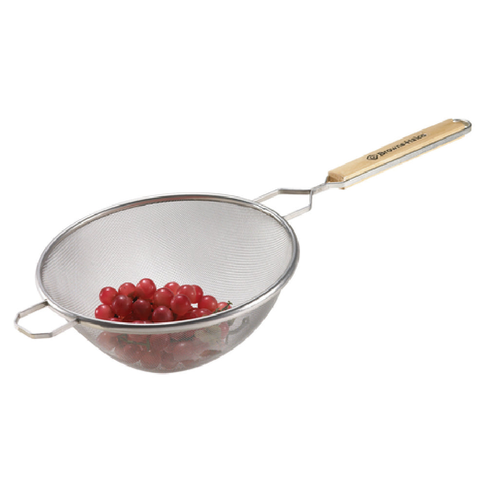The Browne Foodservice 574114 Strainer 4-4/5" Bowl 5-4/5"L Handle is a meticulously crafted kitchen tool designed for precision and versatility in food preparation. Featuring a medium mesh, this strainer is ideal for sifting and draining a variety of ingredients, making it a valuable addition to both home kitchens and professional foodservice environments. The strainer boasts a 4-4/5" diameter bowl, providing an optimal surface area for efficient straining tasks. The 5-4/5" long handle is crafted from wood and features a flat-bottom design, ensuring a comfortable grip and ease of use. Additionally, the handle is equipped with a pan hook, facilitating hands-free operations by allowing the strainer to rest securely over pots and pans. The reinforced wire rim enhances the durability and stability of the strainer, ensuring it withstands the rigors of daily use in demanding kitchen settings. The full-bathed tinned construction not only contributes to its robust build but also protects against corrosion, extending the lifespan of the product. This strainer is a practical and reliable tool, perfectly suited for culinary professionals and cooking enthusiasts who prioritize functionality and quality in their kitchen equipment.