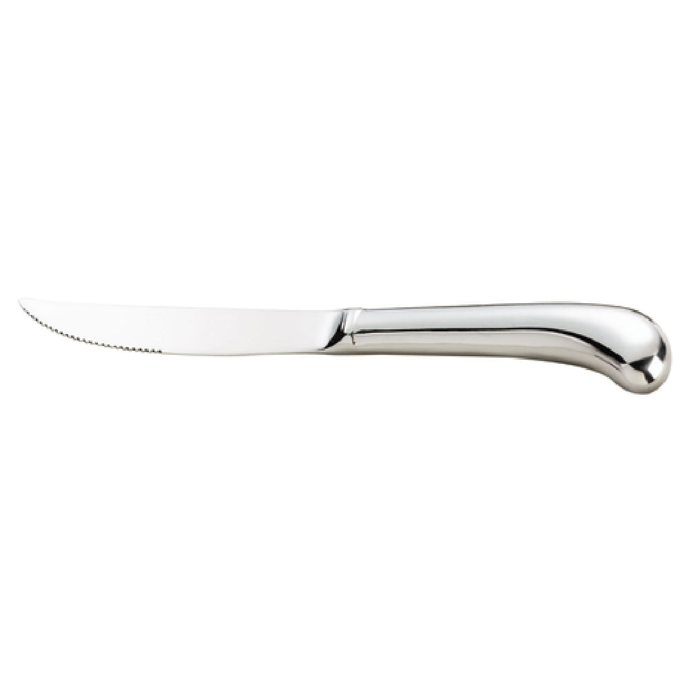 The Browne Foodservice 574334 Delmonico Steak Knife 9" Hollow Handle is a precision-crafted utensil designed for enhanced dining experiences. This steak knife features a sleek 9-inch length, providing the optimal balance between control and cutting efficiency. Constructed from 18/0 stainless steel, it offers an impressive combination of durability and corrosion resistance, making it an ideal choice for both professional foodservice environments and upscale dining. The mirror finish enhances its aesthetic appeal, ensuring it complements any table setting with elegance. The hollow handle design not only contributes to the knife's lightweight feel but also offers superior handling comfort, reducing fatigue during extended use. This knife is particularly suited for establishments seeking to elevate their cutlery selection, including steakhouses, fine-dining restaurants, and catering services. Its robust construction ensures it withstands the demands of regular use while maintaining its sophisticated appearance. The Browne Foodservice 574334 Delmonico Steak Knife exemplifies a fusion of functionality and style, making it a valuable addition to any commercial kitchen or dining venue where quality and presentation are paramount.