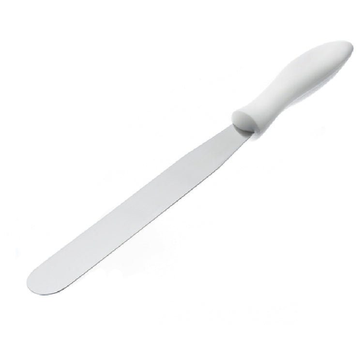 The Browne Foodservice 574392 InnovaTools® Spatula is a precision-engineered kitchen tool, featuring a 17-3/10" overall length and a 12"L x 1-4/5"W German carbon steel blade, which is heat treated and tempered for enhanced durability and performance. This spatula is designed with a dual texture ergonomic white nylon handle, providing heat resistance up to 446°F (230°C), making it suitable for high-temperature cooking tasks. The handle's design ensures a comfortable grip, reducing fatigue during extended use in fast-paced foodservice environments. This spatula is also dishwasher safe, adding convenience for busy kitchen operations by simplifying the cleaning process. Furthermore, it meets NSF standards, which guarantees its suitability for food service environments, emphasizing its commitment to quality and safety. Packaged in a cash and carry format, this spatula is an ideal choice for professional chefs and kitchen staff who require a reliable and efficient tool for various culinary applications. Its robust design and commitment to quality make it a valuable addition to any kitchen, offering exceptional performance and durability essential for the rigorous demands of the foodservice industry.