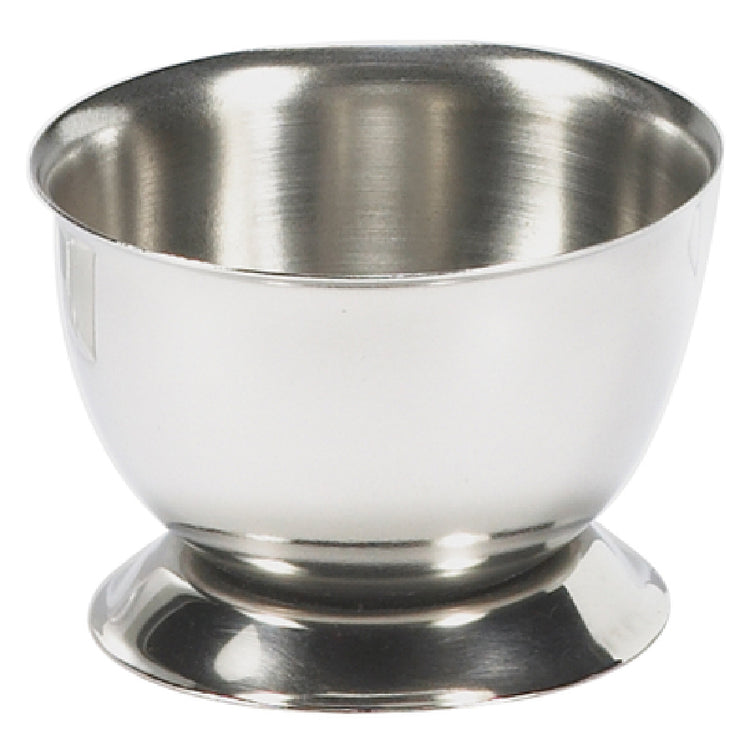 The Browne Foodservice 575063 Egg Cup 1-1/2 Oz. 2" X 1" is a meticulously designed culinary accessory, perfect for various segments within the foodservice industry. Crafted from high-quality stainless steel, this egg cup boasts a sleek mirror finish, combining both functionality and aesthetic appeal. With a capacity of 1-1/2 ounces, it provides an ideal solution for serving precisely portioned soft-boiled or poached eggs. The compact dimensions, 2 inches by 1 inch, make it a versatile fit for any table setting, whether in a bustling restaurant, a chic café, or a domestic kitchen. This egg cup's durable construction ensures longevity, resisting the wear and tear typical in busy food service environments. Its polished surface not only enhances visual appeal but also facilitates easy cleaning, maintaining hygiene standards. The Browne Foodservice 575063 Egg Cup is a practical choice for chefs and home cooks alike, offering a reliable and stylish option for breakfast service or gourmet presentations, demonstrating its value across different culinary markets.