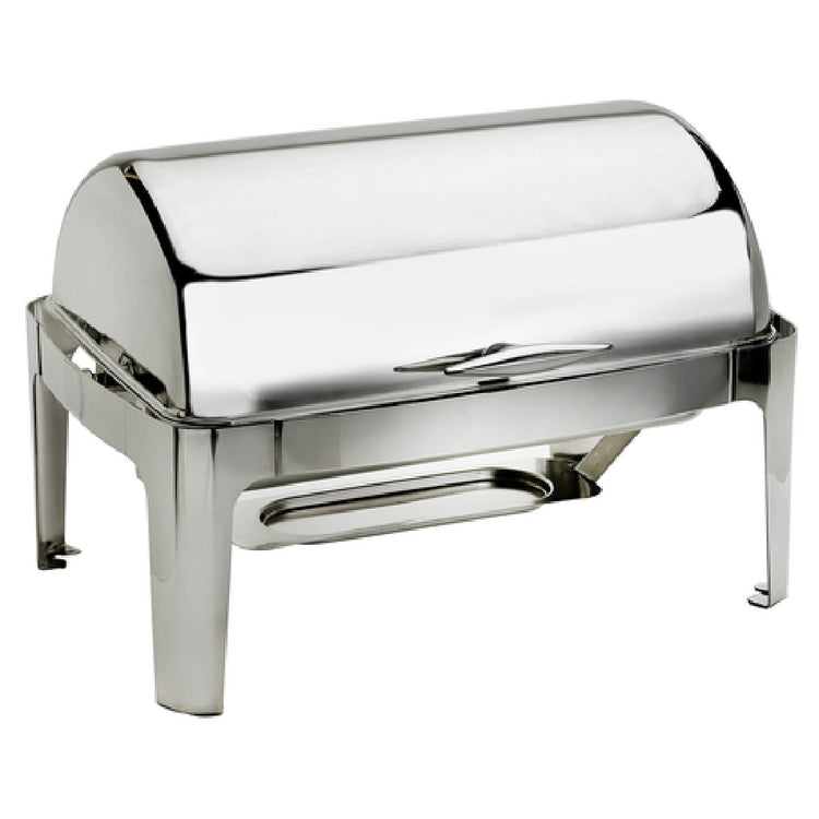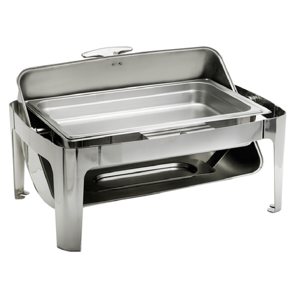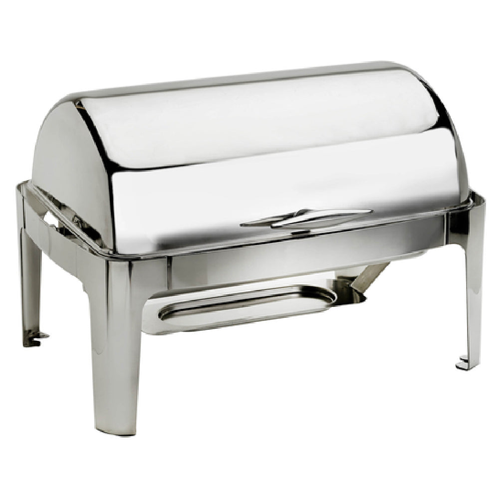 The Browne Foodservice 575137 Cadence Chafer 9 Qt. is a versatile serving solution, ideal for catering events and buffets. This rectangular chafer, measuring 26-1/2" x 21-1/2" x 17-1/2", is designed to accommodate various culinary needs with its two-sided server capability. It features a fully retractable vented roll top, allowing for easy access and efficient temperature control. The chafer includes a food pan and a water pan, ensuring that dishes remain at optimal serving temperatures throughout the event. Equipped with two fuel holders, it provides reliable heating options to maintain food quality. The mirror finish adds a touch of elegance, while the stainless steel construction ensures durability and long-lasting use. This chafer is perfect for banquet halls, hospitality establishments, and professional caterers seeking a high-quality and functional foodservice solution. Its design not only enhances the presentation but also supports the operational efficiency required in high-demand settings, making it a valuable addition to any foodservice operation. Whether used in formal dining settings or casual buffet-style events, the Browne Foodservice 575137 Cadence Chafer 9 Qt. delivers both style and practicality, meeting the diverse needs of the foodservice industry.