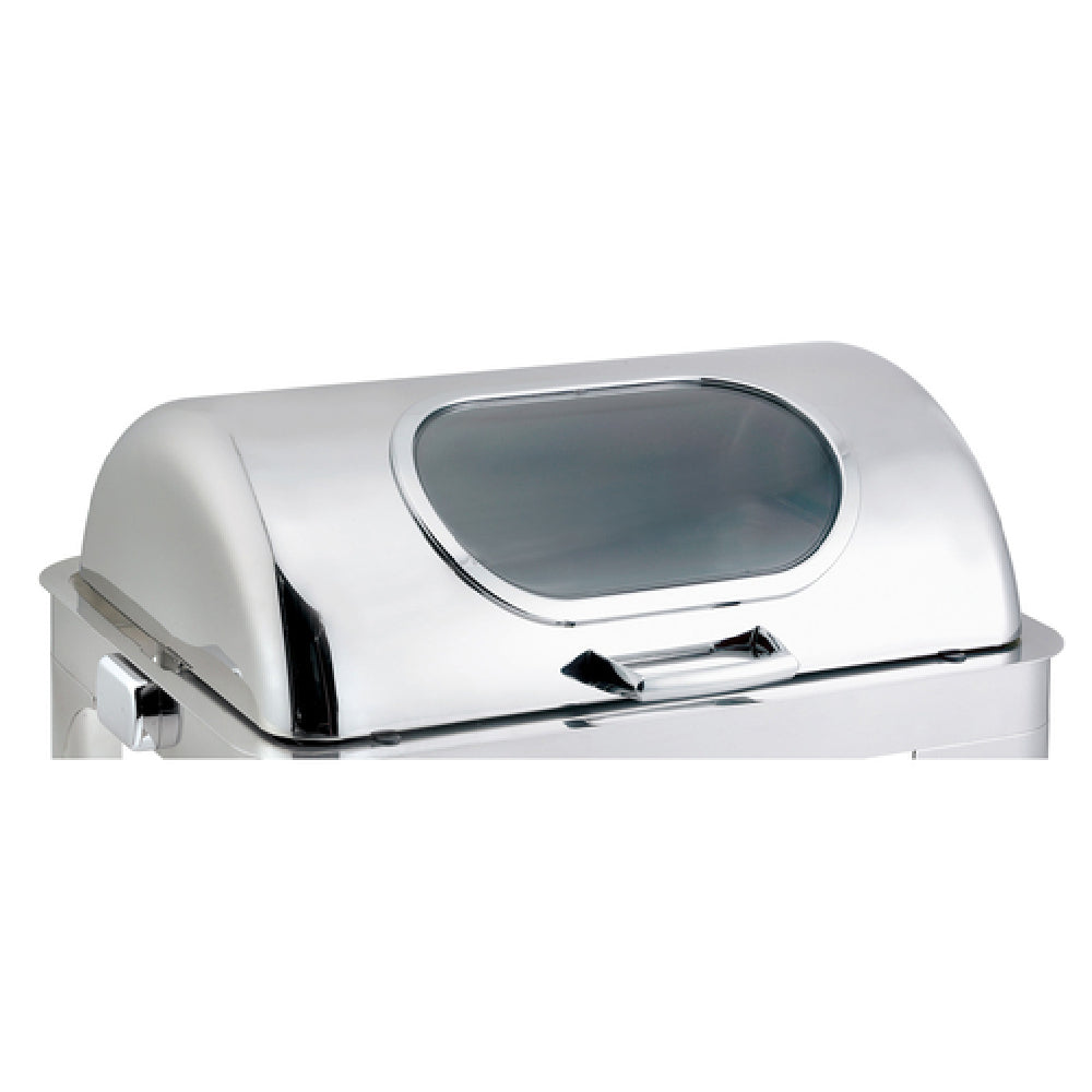 The Browne Foodservice 575166 Harmony Chafer 9 Qt. is a high-capacity rectangular chafer with dimensions of 26-1/2"L x 21-1/2"W x 17-1/2"H, designed for versatile foodservice applications. It includes a 20" x 12" x 2-1/2" food pan, two fuel holders, and a 4" deep water pan, providing ample space for warming and serving large quantities of food. A standout feature is its clear nautilus polycarbonate fog-resistant window with vent holes, enhancing visibility and temperature regulation. The cover is engineered with a built-in stop at 140° for single-side serving, and it fully retracts to 180° for two-side serving, offering flexibility in service styles. For ease of maintenance, the cover can be removed without tools, and it features an automatic tension adjuster for smooth operation. The chafer is equipped with mounting studs for an electric heater, adapting to various heating preferences. Constructed from stainless steel with a mirror finish, it combines durability with an attractive appearance, making it suitable for upscale events, catering services, or buffet settings. This chafer is a practical choice for the foodservice industry, meeting diverse market needs with its robust and user-friendly design.