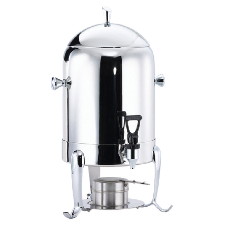The Browne Foodservice 575173 Octave Coffee Urn is an expertly crafted piece, designed to cater to demanding environments with its generous 11 qt. capacity, translating to 44 servings of 8 oz. each. This coffee urn stands at 20 inches in height, with dimensions of 12 inches by 12-1/2 inches, providing ample volume for large gatherings or catering events. The inclusion of a fuel cup holder ensures that your coffee remains hot and ready to serve, enhancing its practicality for high-volume service. Constructed from stainless steel with a mirror finish, the urn not only offers durability but also adds a touch of elegance to any setting. A standout feature is its removable faucet, which is designed for optional hands-free operation, promoting both convenience and hygiene. The Browne Foodservice 575173 Octave Coffee Urn is particularly suitable for catering companies, hotels, and large event venues looking to provide seamless beverage service. Its robust build and thoughtful design elements make it an essential tool for foodservice professionals who require reliability and efficiency in a coffee urn. This product's unique value lies in its combination of capacity, durable construction, and user-friendly features tailored to the needs of the foodservice industry.