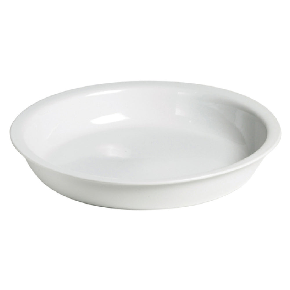 - A round porcelain pan insert for versatile food service