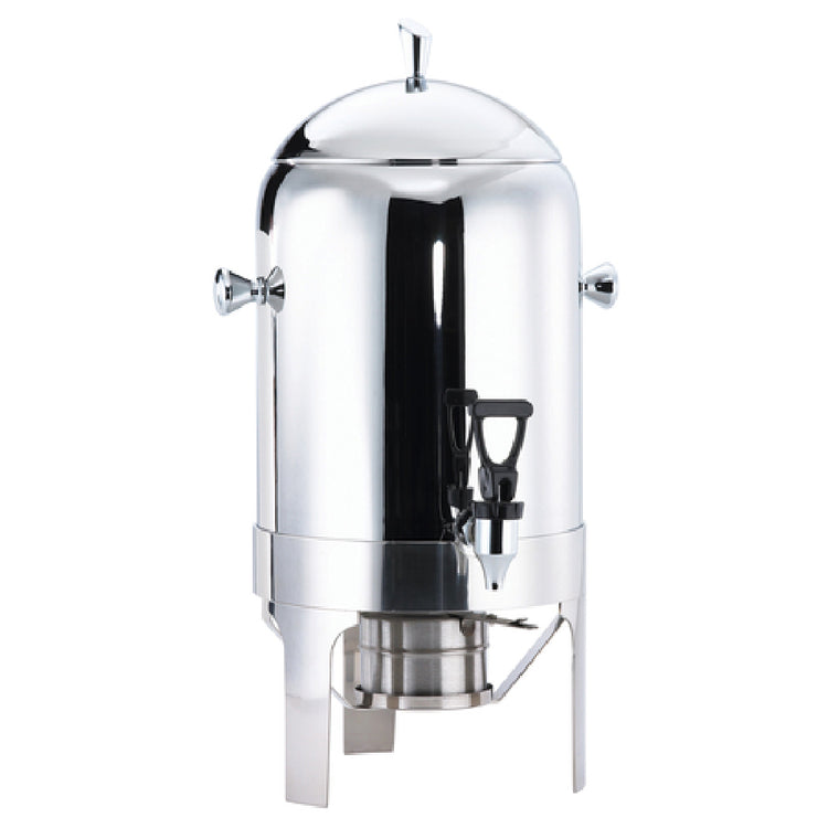 The Browne Foodservice 575178 Harmony Coffee Urn is a meticulously crafted stainless steel unit with a mirror finish, designed to cater to diverse coffee serving needs. With a generous capacity of 11 quarts, this urn efficiently serves up to 44 servings of 8-ounce cups, making it ideal for large gatherings or high-demand service environments. Its dimensions - 12 inches by 12-1/2 inches by 20 inches - ensure a compact yet spacious design, suitable for various settings, from buffets to conference rooms. The urn is equipped with a fuel cup holder, promoting ease of use and consistent heat distribution throughout its operation. A standout feature is its removable faucet, which offers optional hands-free operation, enhancing usability and hygiene - critical considerations in foodservice operations. The Harmony Coffee Urn's combination of functionality, capacity, and design makes it a valuable asset for caterers, event organizers, and hospitality venues aiming to provide seamless beverage service. Its polished appearance complements its superior performance, ensuring that both guests and service professionals appreciate its presence and utility within an array of service environments.