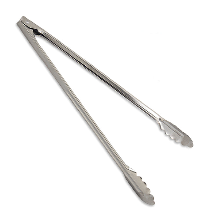 The Browne Foodservice 57539 Utility Tongs 16" Coil Spring Operated are expertly designed kitchen tools that cater to the diverse needs of the foodservice industry. These utility tongs measure 16 inches in length, providing ample reach and precision for chefs and kitchen staff in restaurants, catering services, and hospitality environments. The coil spring mechanism ensures smooth and reliable operation, making them an efficient choice for high-volume kitchens. Crafted from high-quality stainless steel, these tongs boast a 1.0 mm thickness, offering durability and resilience for rigorous daily use. The satin finish not only enhances their aesthetic appeal but also contributes to easy cleaning and maintenance. Featuring scalloped edges, these tongs provide a secure grip on a variety of foods, from delicate pastries to hearty meats, making them versatile for different culinary applications. Individually poly-bagged, they are presented with attention to hygiene and protection during storage and transport. The Browne Foodservice 57539 Utility Tongs are a practical and reliable choice for professionals seeking durable kitchen tools that can withstand the demands of a bustling foodservice environment.