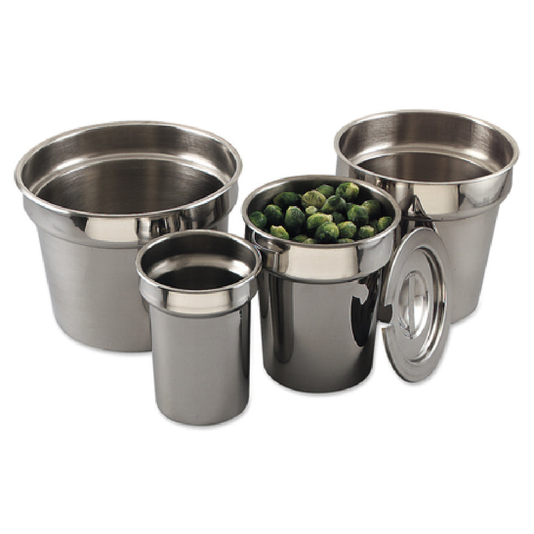 The Browne Foodservice 575584 Vegetable Inset 4-1/10 Qt. 7-1/2" Dia is a precision-engineered component crafted for seamless integration into commercial steam tables or soup warmers. Designed with a capacity of 4-1/10 quarts, this vegetable inset caters to a range of culinary applications within the foodservice industry. The inset features a diameter of 7-1/2 inches, precisely fitting into a 6-1/2-inch opening, ensuring compatibility with standard steam table configurations. Constructed from high-quality stainless steel, it boasts a satin finish interior that aids in easy cleaning and maintenance, while the mirror-polished exterior enhances its aesthetic appeal, making it a stylish addition to any professional kitchen. This combination of design and material choice underscores its utility for chefs and foodservice professionals seeking durable, reliable equipment. The Browne Foodservice 575584 Vegetable Inset is particularly suitable for establishments aiming to streamline their food presentation and heating solutions, providing an optimal balance of form and function. Whether utilized in bustling restaurant kitchens or large-scale catering events, this vegetable inset delivers consistent performance, underscoring its value across diverse market segments within the hospitality industry.