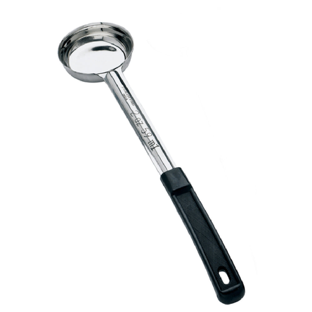 The Browne Foodservice 5757220 Food Portioner 2 Oz. 10-4/5"L is an expertly designed kitchen tool tailored for precise food measuring needs. It features a solid, one-piece construction, ensuring durability and longevity in demanding foodservice environments. The portioner is crafted from high-quality stainless steel, offering a 1.0 mm thickness for enhanced strength and resistance to bending or deformation during use. Its black polypropylene handle is heat resistant up to 392°F (200°C), providing both safety and comfort during operation. The 2 oz. capacity enables accurate portion control, crucial for maintaining consistency in dish preparation and managing food costs effectively. With its length of 10-4/5 inches, this food portioner ensures ease of handling and reach in large cooking containers. The Browne Foodservice 5757220 is ideal for professional chefs, catering businesses, and institutional kitchens where precise portioning is essential. Its robust design and practical features make it suitable for a range of culinary applications, from serving sauces to distributing side dishes, ensuring it meets the high standards expected in the foodservice industry.