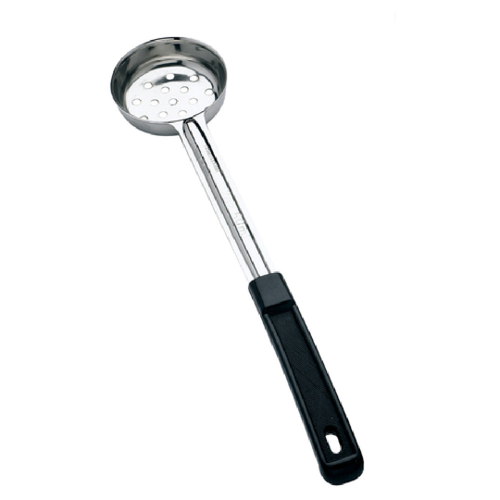 The Browne Foodservice 5757221 Food Portioner 2 Oz. 10-4/5"L is a meticulously crafted tool designed for precision and efficiency in the foodservice industry. With a capacity of 2 ounces, this portioner is ideal for environments where consistency in serving size is critical, such as cafeterias, restaurants, and catering services. Its length of 10-4/5 inches offers ease of use and control, making it suitable for both high-volume and small-scale operations. The portioner's perforated design enhances its functionality, allowing for effective draining of excess liquids, which is particularly useful in preparing salads and other moist dishes. Constructed from stainless steel with a thickness of 1.0 mm, it ensures durability and longevity, even under rigorous use. The polypropylene handle is heat resistant up to 392°F (200°C), providing a safe and comfortable grip for culinary professionals. The one-piece construction of this portioner not only adds to its sturdiness but also simplifies cleaning, maintaining hygiene standards in busy kitchens. Available in a sleek black finish, the Browne Foodservice 5757221 Food Portioner is a versatile and reliable tool for precise food portioning, meeting the needs of diverse market segments within the foodservice industry.
