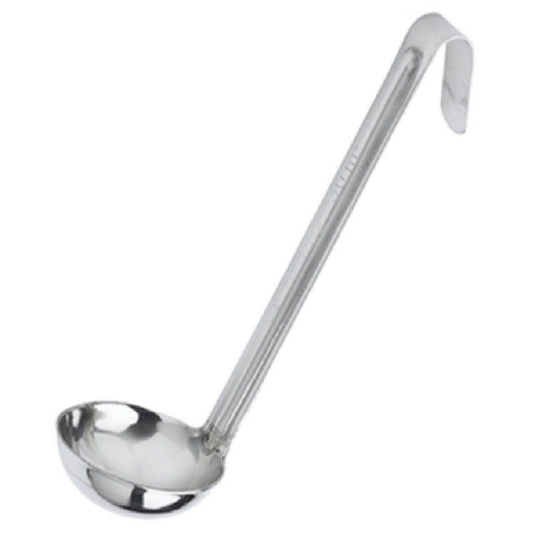 The Browne Foodservice 575727 Demi Ladle 1 Oz. 5-4/5"L is a precision-engineered kitchen tool, perfect for foodservice professionals seeking reliability and durability. This one-piece ladle boasts a reinforced grooved handle, ensuring a secure grip and enhanced control during use. Measuring 5-4/5 inches in length, it is designed for comfortable handling in busy kitchen environments. Crafted from high-quality stainless steel with a thickness of 1.0 mm, this ladle promises lasting strength and resistance to wear and tear. The mirror finish not only adds a touch of elegance but also aids in easy cleaning, maintaining its pristine appearance over time. The compact 1-ounce capacity makes it ideal for tasks requiring precise portion control, such as serving sauces, dressings, or small soup servings. This product is suitable for a variety of segments within the foodservice industry, from upscale restaurants requiring stylish service utensils to catering companies needing durable and efficient serving tools. The Browne Foodservice Demi Ladle is a versatile choice, embodying a blend of practicality and aesthetic appeal that meets the rigorous demands of professional kitchens while enhancing the presentation of culinary creations.
