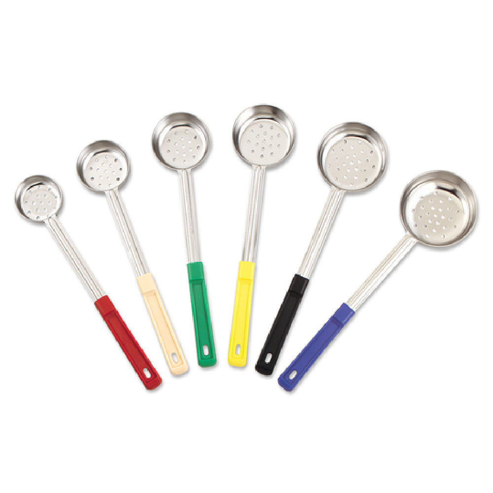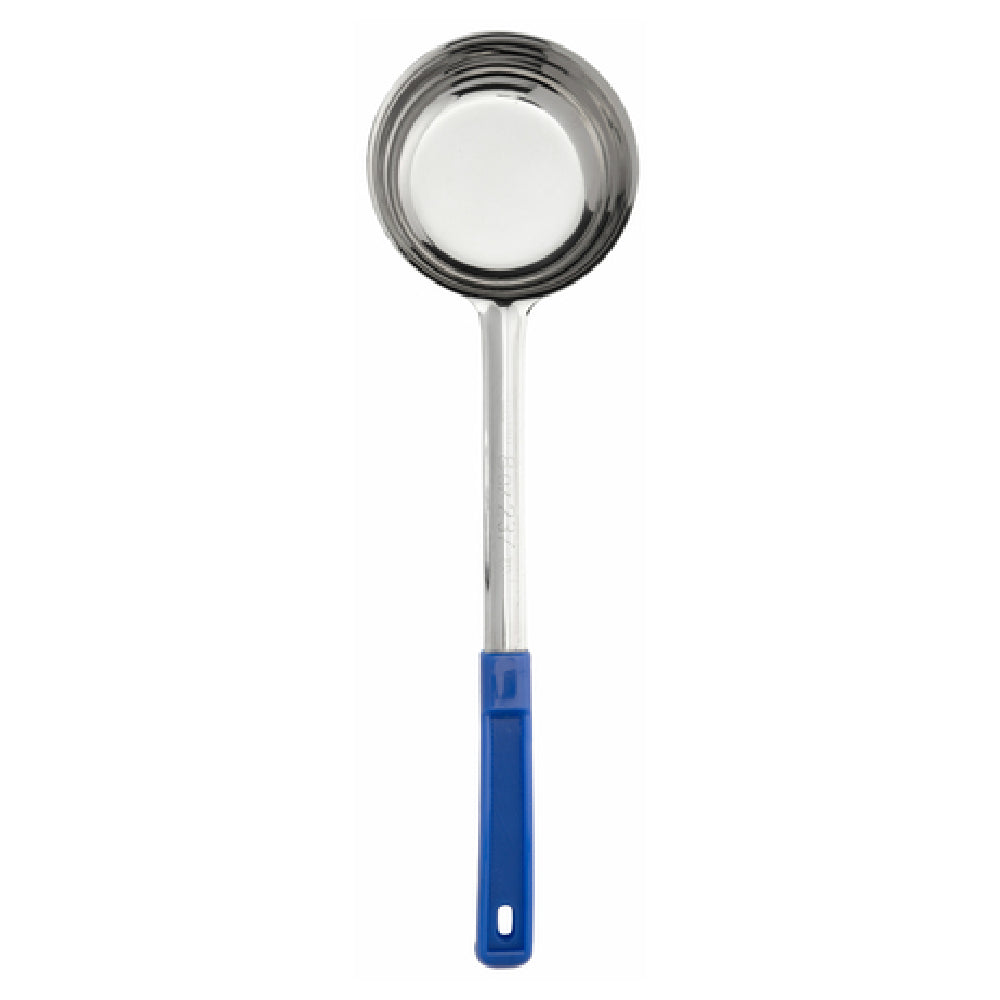 The Browne Foodservice 5757480 Food Portioner 8 Oz. 10-4/5"L is a meticulously designed kitchen tool ideal for precise food portioning across various foodservice sectors. Engineered with a solid, one-piece construction, this portioner guarantees durability and ease of use. The 8 oz. capacity is perfect for consistent portion sizes, making it a reliable choice for establishments that prioritize precision in serving sizes. Crafted from stainless steel with a thickness of 1.0 mm, this portioner ensures robustness and longevity, able to withstand the demands of high-volume kitchens. The polypropylene handle, designed for comfort and efficiency, is heat resistant to 392°F (200°C), providing safety and ease of handling in busy cooking environments. Its vibrant blue handle allows for easy identification and differentiation among kitchen tools. The 10-4/5" length offers an optimal reach and balance, facilitating ease of use during service. Whether in a bustling restaurant, catering environment, or institutional setting, the Browne Foodservice 5757480 Food Portioner stands out for its quality construction and practical design, meeting the diverse needs of foodservice professionals who require reliable and efficient portioning solutions.