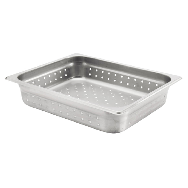 The Browne Foodservice 5781212 Steam Table Pan 1/2 Half Size 4.3 Qt. is a meticulously designed kitchen essential that caters to the diverse needs of the foodservice industry. This steam table pan features a 1/2 half size format with a capacity of 4.3 quarts, making it suitable for a variety of meal preparations and serving applications. Measuring 12-3/4 inches in length, 10-3/8 inches in width, and 2-1/2 inches deep, this pan is crafted to fit seamlessly into standard steam tables. Constructed from 18/8 stainless steel with a robust 24-gauge thickness, it ensures durability and longevity in demanding kitchen environments. The perforated design allows for efficient drainage, making it ideal for steaming and maintaining the texture of delicate foods. Additionally, the anti-jam feature ensures easy stacking and separation, enhancing convenience and efficiency during busy service hours. This steam table pan is an invaluable tool for catering companies, restaurants, and institutional kitchens, providing versatility and reliability in food presentation and service. Its high-quality stainless steel construction not only resists corrosion but also ensures easy cleaning, thereby maintaining high hygiene standards in any culinary setting.