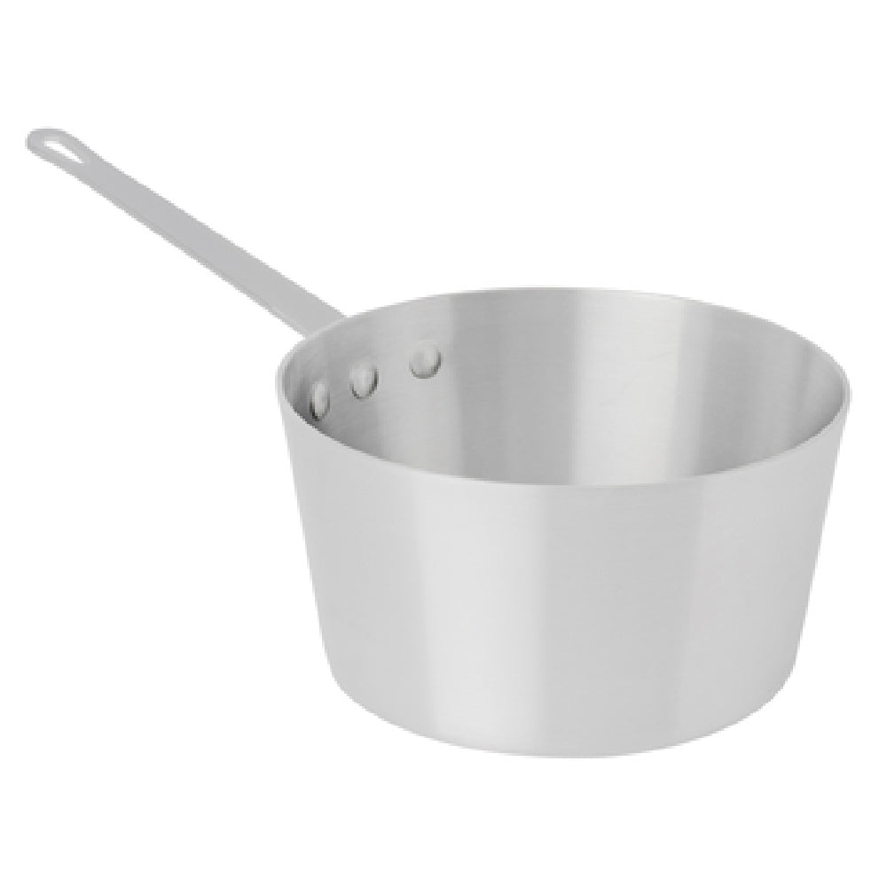 The Browne Foodservice 5813904 Thermalloy® Sauce Pan is a versatile kitchen essential with a capacity of 4-1/2 quarts and dimensions of 9 inches in diameter and 5 inches in height, making it suitable for various cooking needs. This saucepan is crafted from standard-weight 6-gauge aluminum, ensuring durability and optimal heat conductivity. Its natural finish provides a sleek appearance while enhancing its resistance to corrosion. The riveted handle offers a secure grip and reliable support during use. Designed to operate efficiently with gas, electric, ceramic, and halogen stovetops, this saucepan caters to diverse culinary environments and professional kitchens. The tapered design allows for easy pouring and efficient heat distribution, ensuring even cooking results. While it comes without a cover, the Browne Foodservice 5813904 Thermalloy® Sauce Pan remains a robust choice for chefs looking for quality cookware that can withstand the demands of a busy kitchen. Its construction and compatibility with various heat sources make it an essential tool for foodservice professionals seeking reliable performance and versatility in their culinary operations.