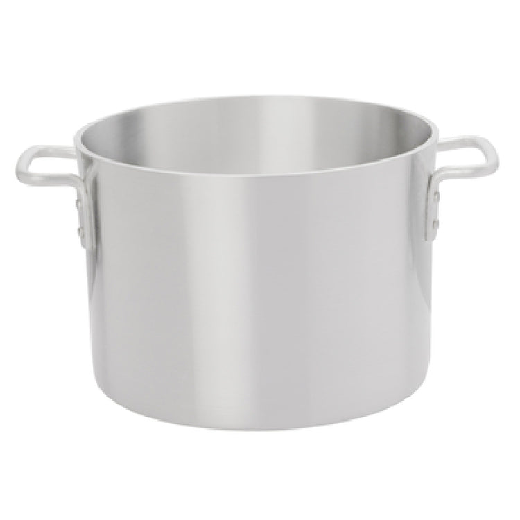 The Browne Foodservice 5814320 Thermalloy® Sauce Pot 20 Qt. 12-1/2" X 9" is a high-quality culinary tool designed for professional kitchens, emphasizing durability and versatility. This 20-quart sauce pot, with dimensions of 12-1/2 inches in diameter and 9 inches in height, is crafted from heavy-weight, 2-gauge aluminum, ensuring even heat distribution and reliable performance over extended use. Its natural finish provides a classic look and easy maintenance, aligning with the standards expected in foodservice environments. The pot features oversized riveted handles, enhancing safety and ease of handling, especially when dealing with large volumes of hot liquids. Its compatibility with gas, electric, ceramic, and halogen heat sources makes it a versatile addition to any kitchen, accommodating various cooking preferences and setups. Although the pot does not come with a cover, its robust construction and adaptability in different culinary situations are significant advantages. The Browne Foodservice 5814320 is NSF certified, assuring adherence to public health and safety regulations, making it an ideal choice for restaurants, caterers, and other foodservice establishments looking for reliable cookware that complements a professional setup. Its blend of practical design and durable materials positions it as a valuable asset for culinary professionals.